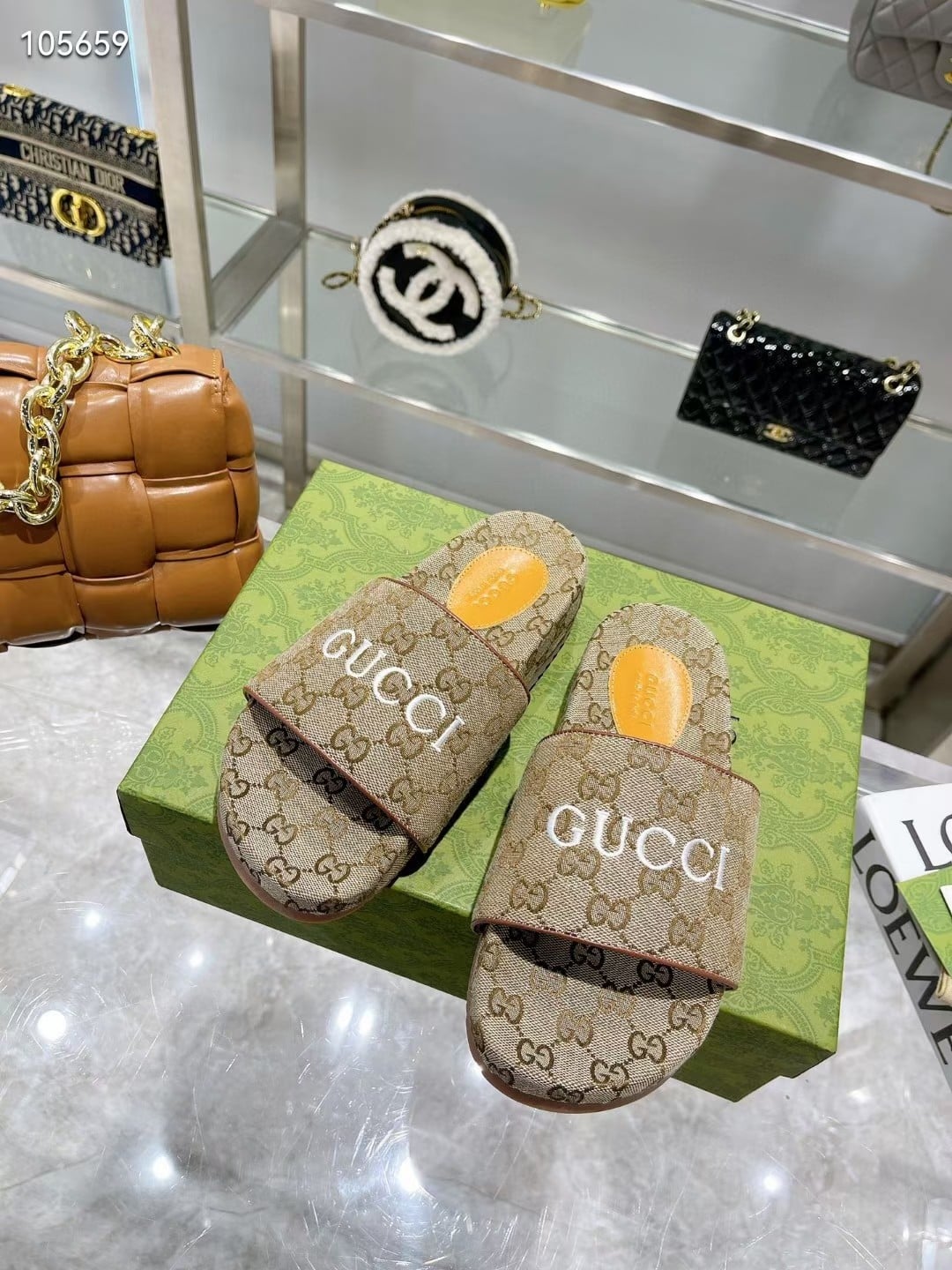 Gucci Women’S Gg Canvas Slide Sandal Beige Ebony
