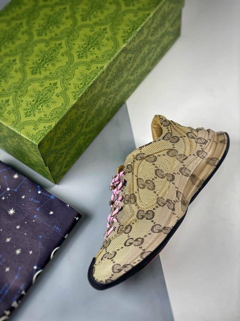 • Gucci Women’S Gucci Run Sneaker In Water Transfer Printed Leather Beige 725612 Aabeb 9742
