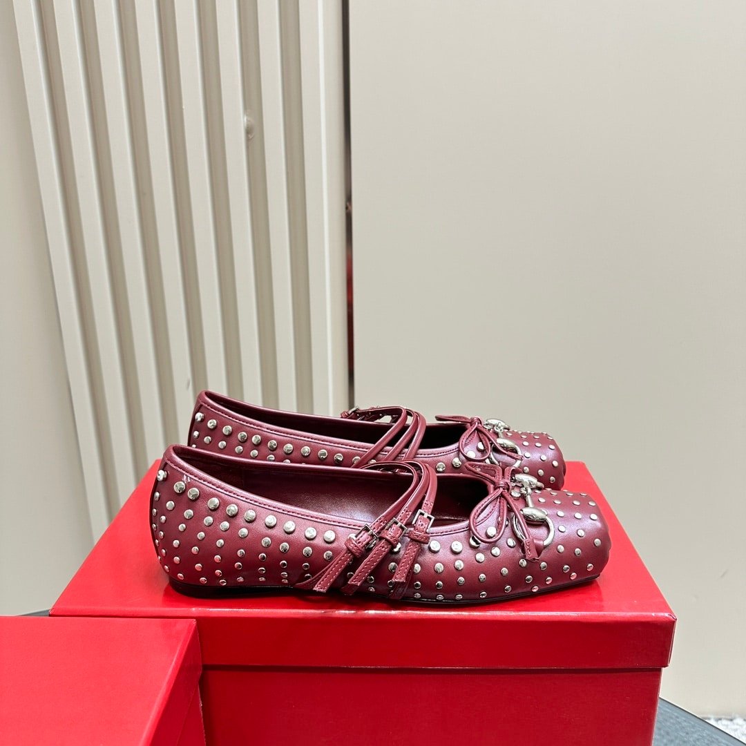 • Gucci Women’S Horsebit Ballet Flat Allover Studs Red 821218 Aaeev 6249