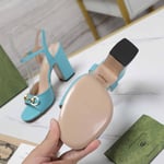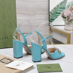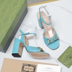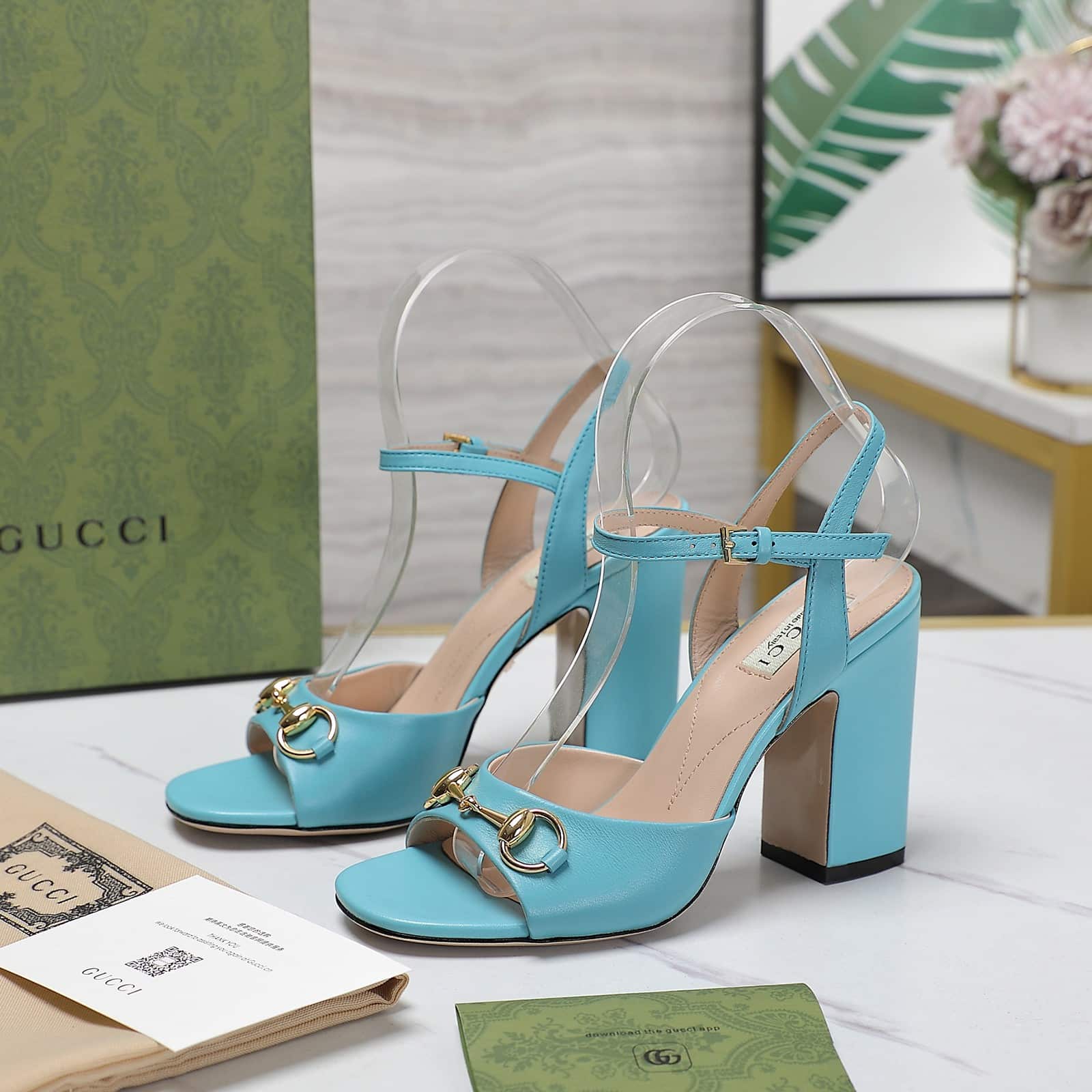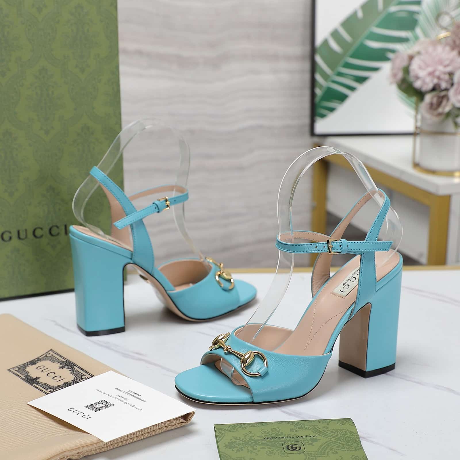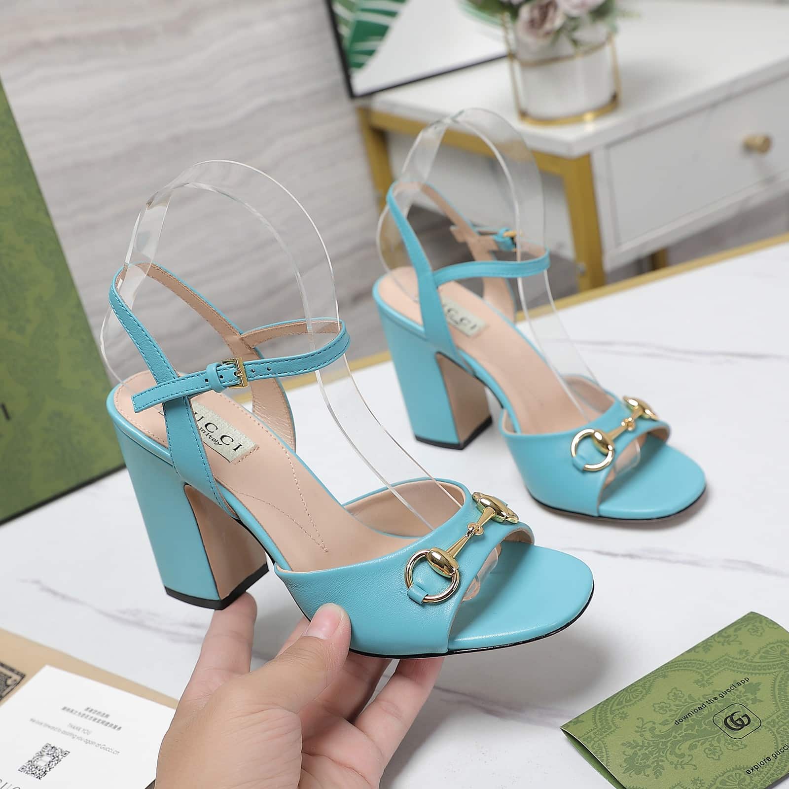 Gucci Women’S Horsebit High Heel Sandal Blue ?771600 C9D00 4728