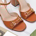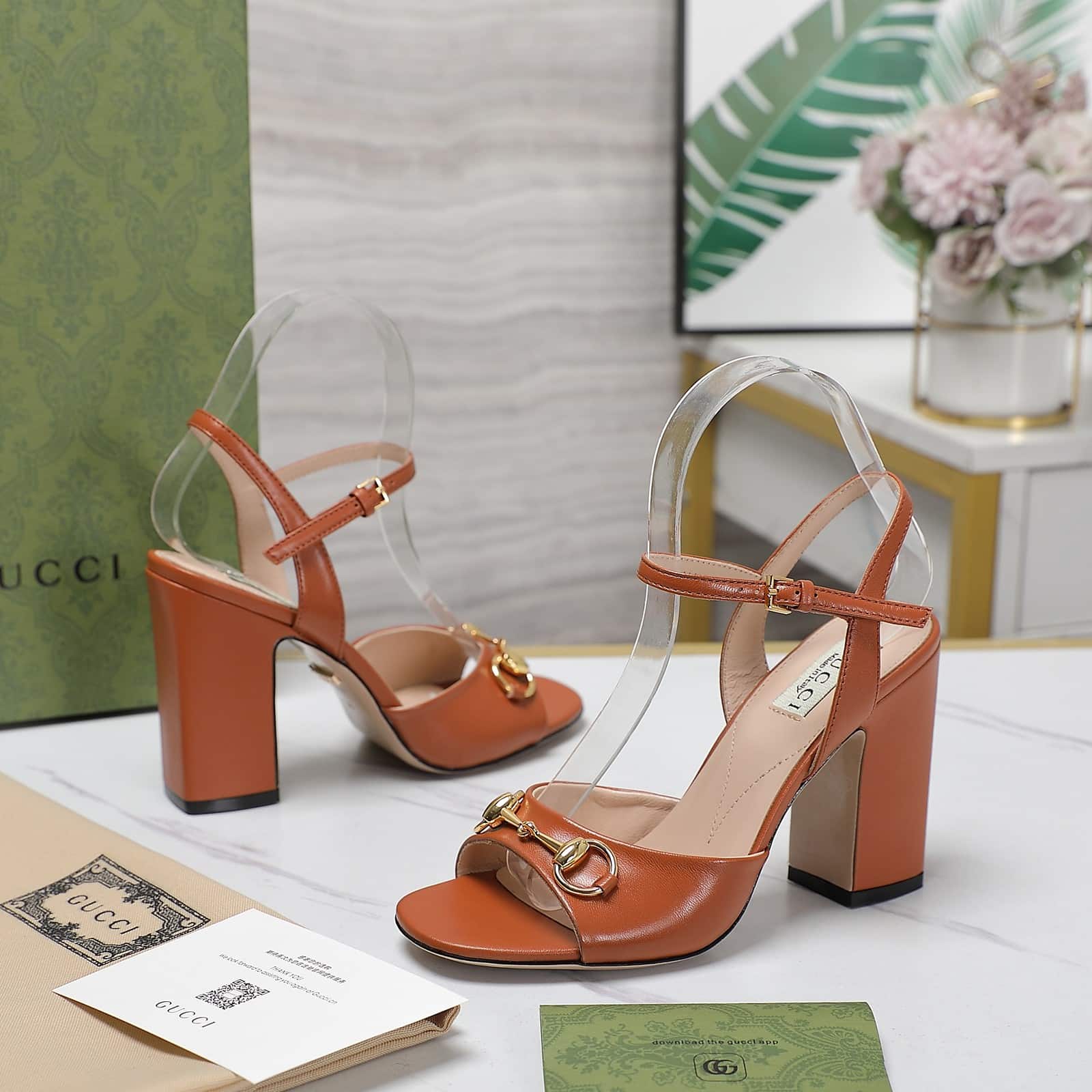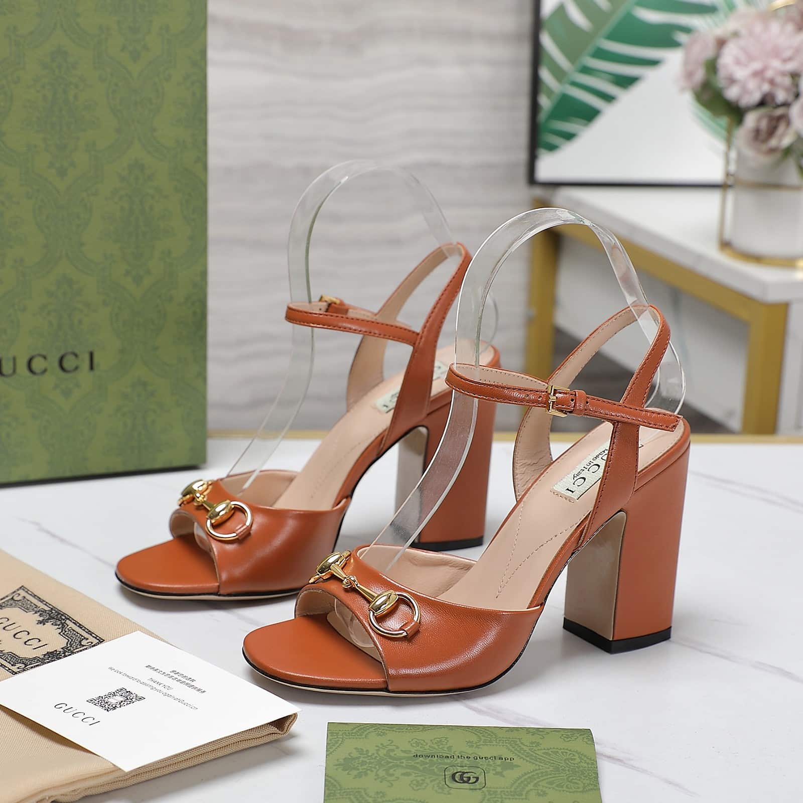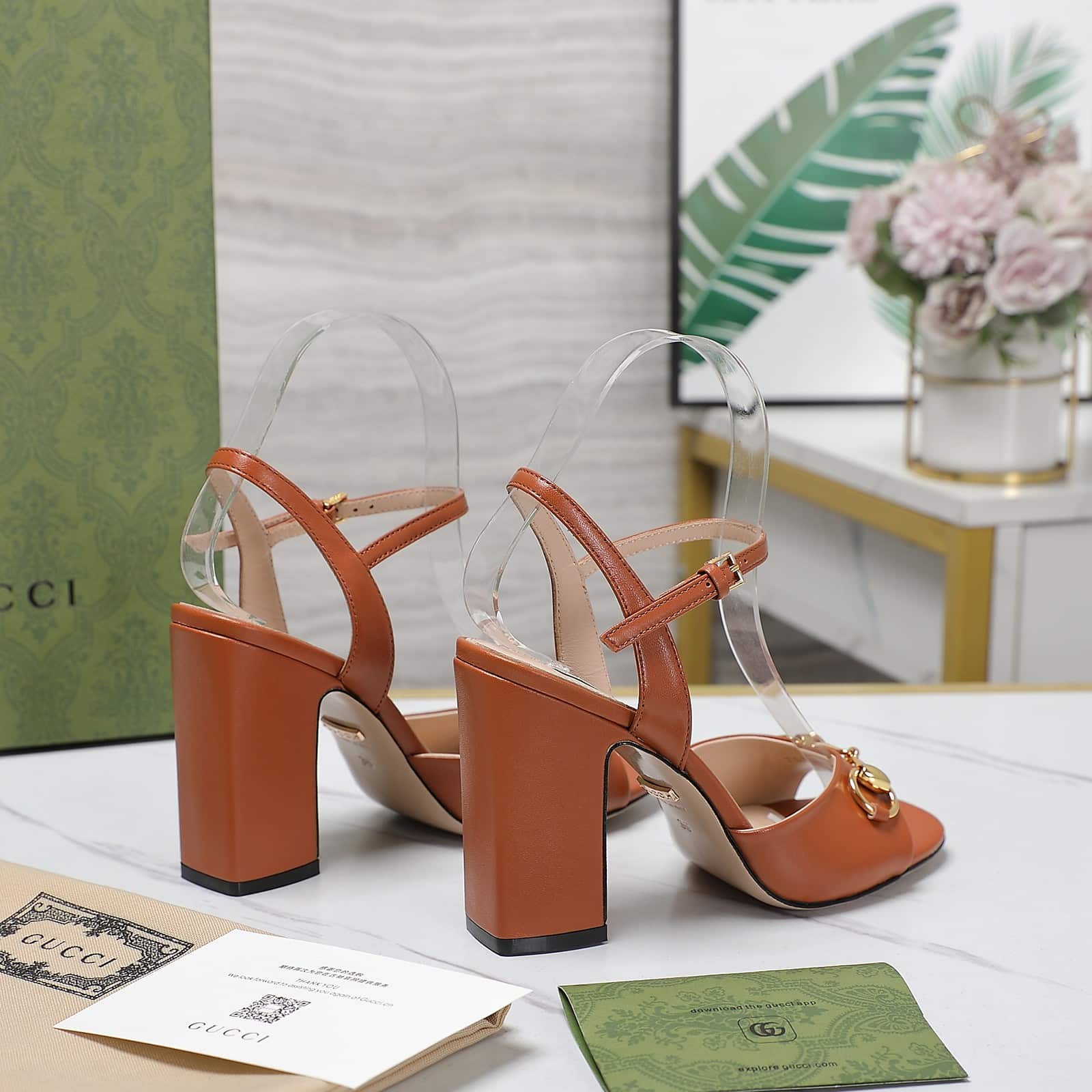 Gucci Women’S Horsebit High Heel Sandal Brown 771600 C9D00 2176