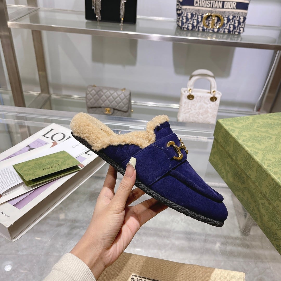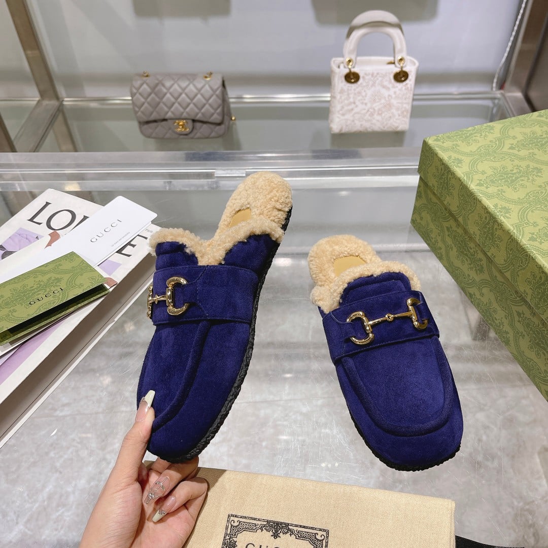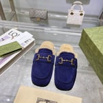 Gucci Women’S Mule With Horsebit Suede Leather Blue