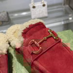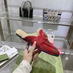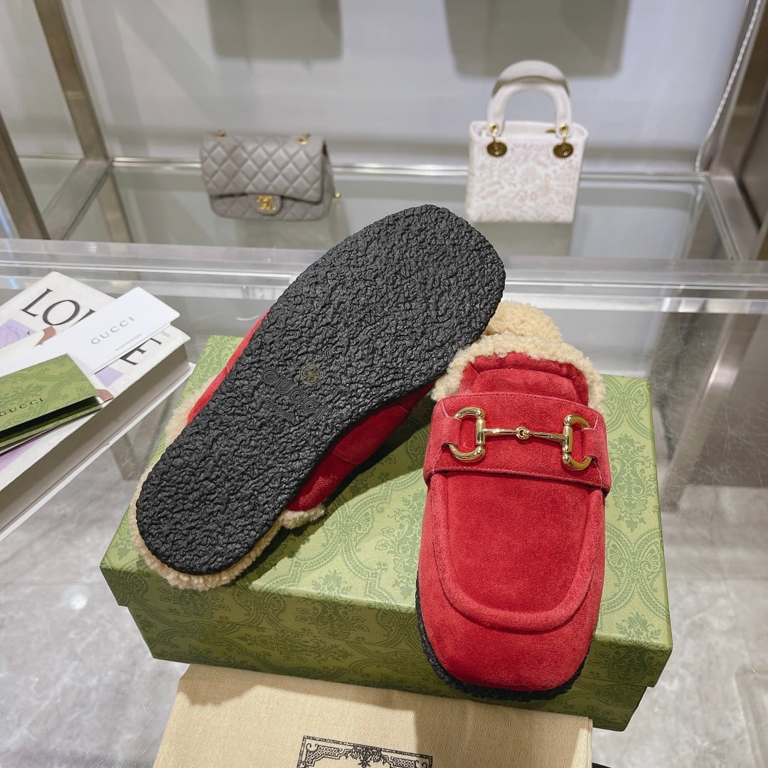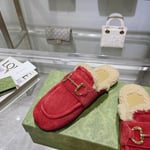 Gucci Women’S Mule With Horsebit Suede Leather Red
