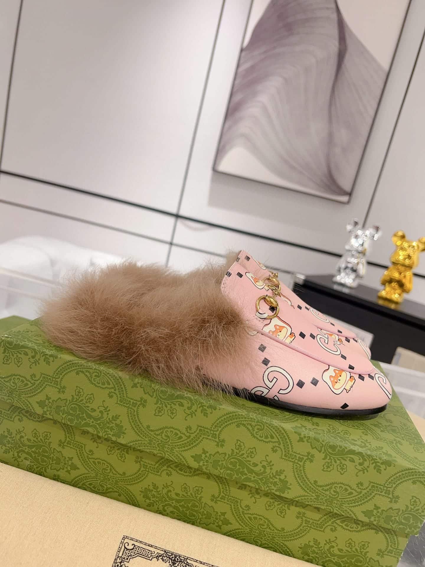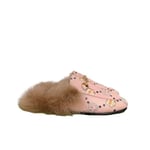 Gucci Womens Pink X Pikarar Kawaii Leather Fur Backless Loafers