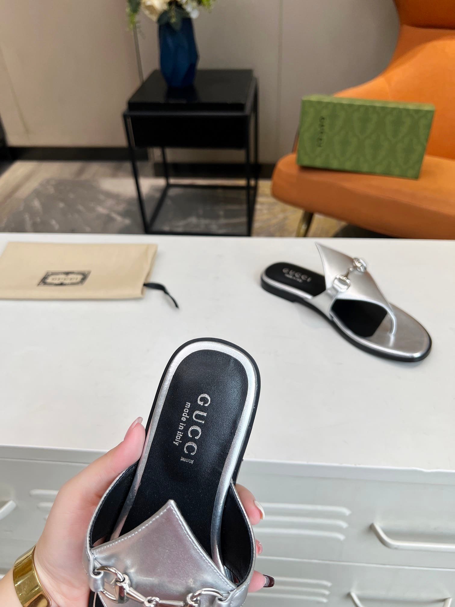 Gucci Women’S Thong Sandal With Horsebit Silver
