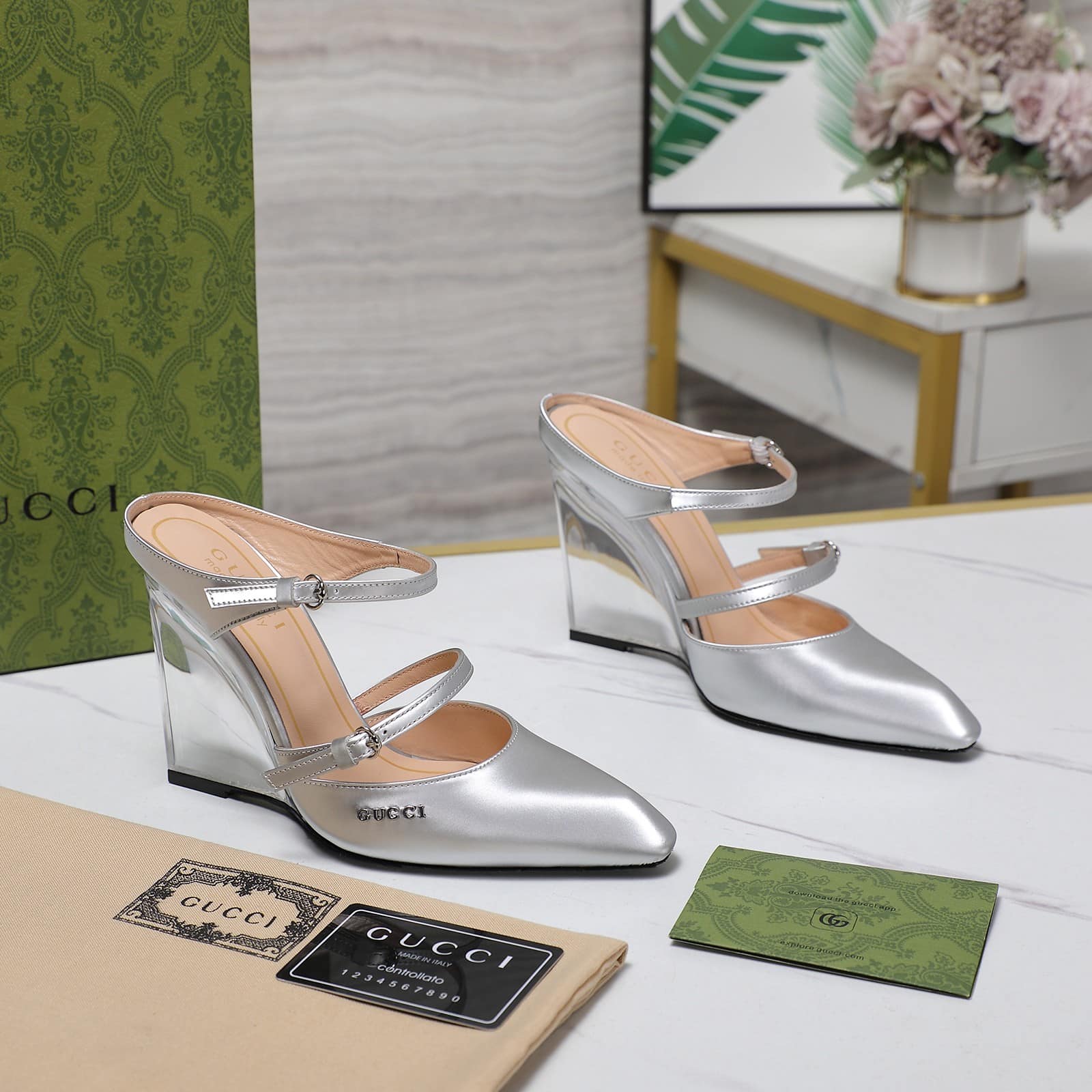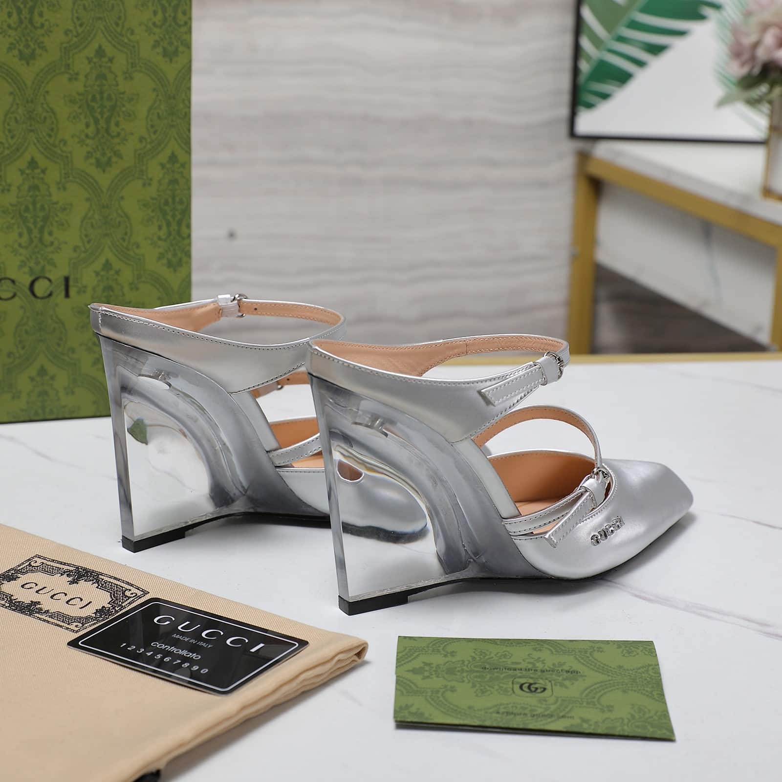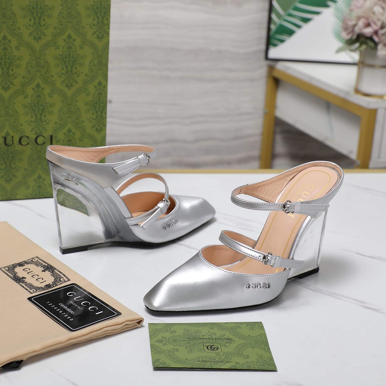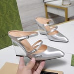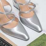 Gucci Women’S Wedge Mule Silver