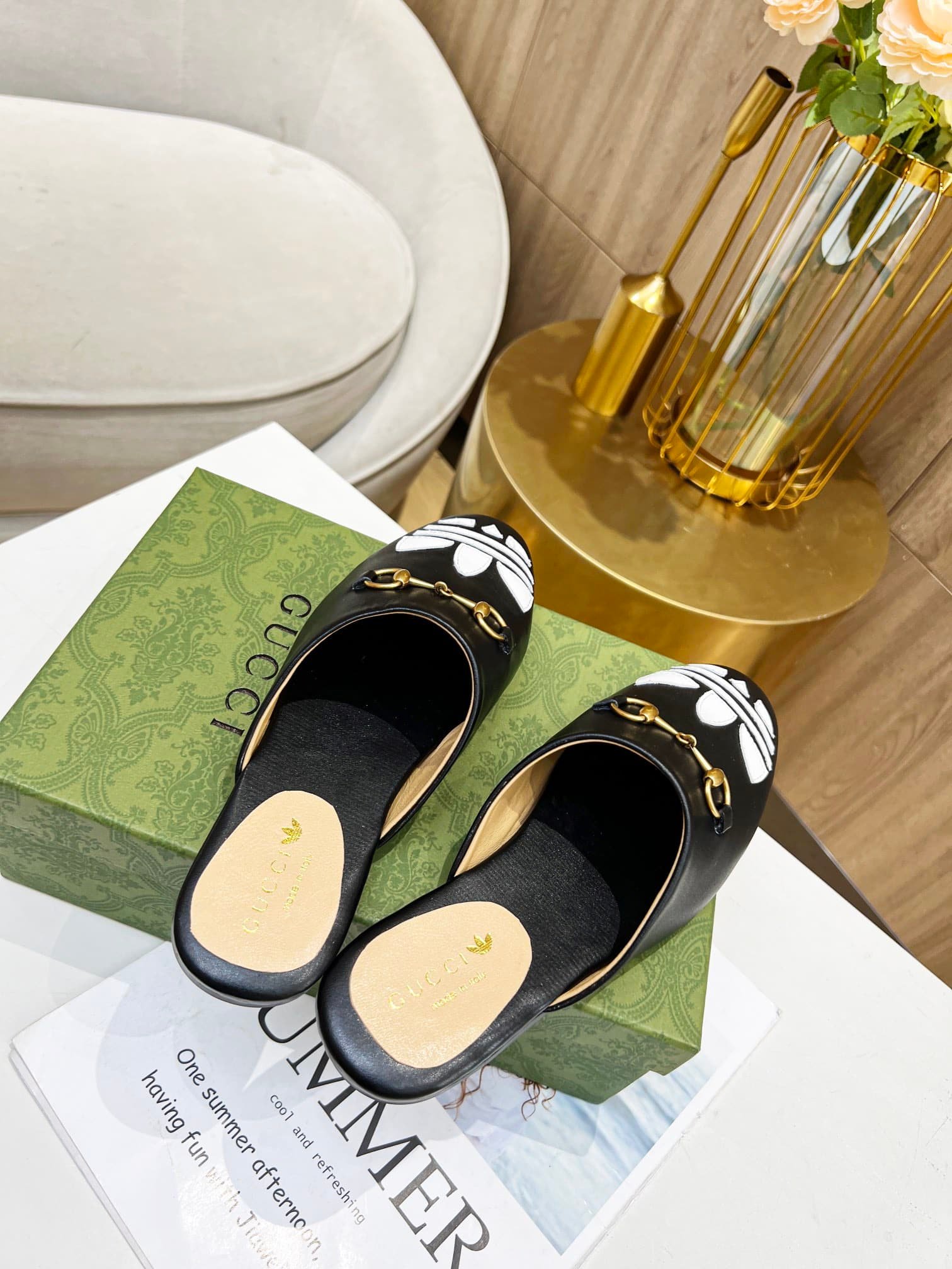 Gucci X Adidas Women’S Trefoil Slipper Leather Black