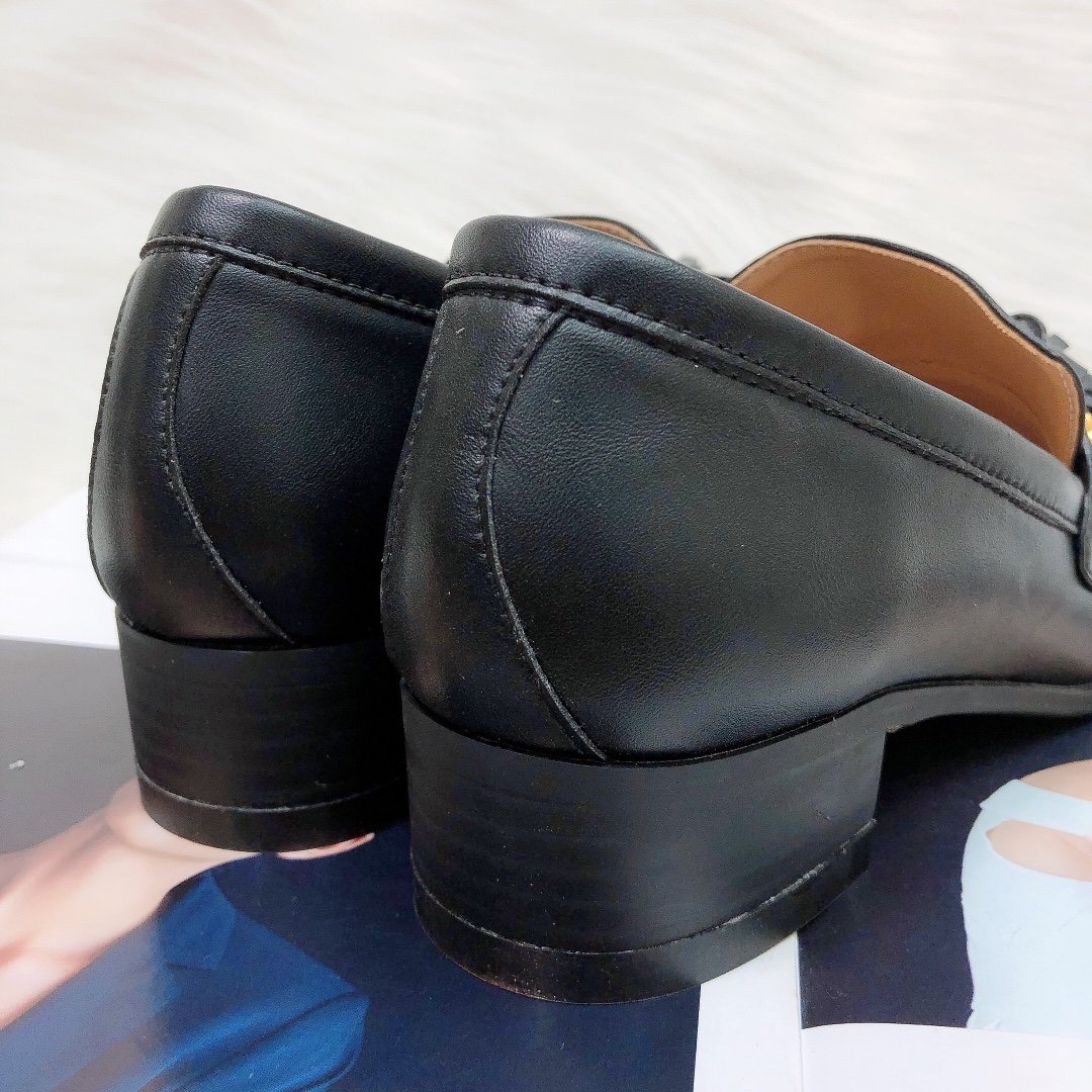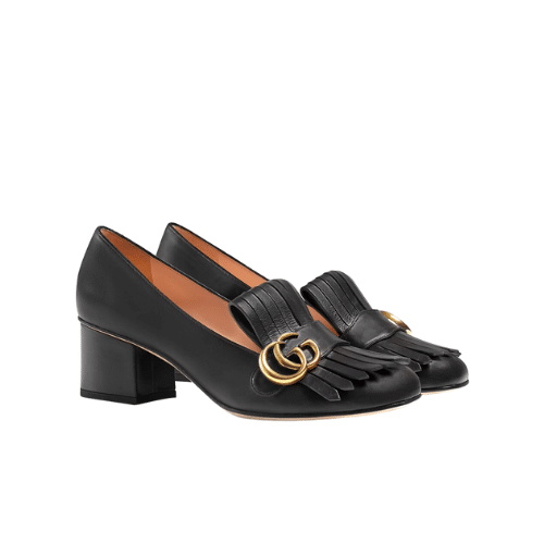 Gucci Wmns Black Leather Mid-Heel Pump 408208 C9D00 1000