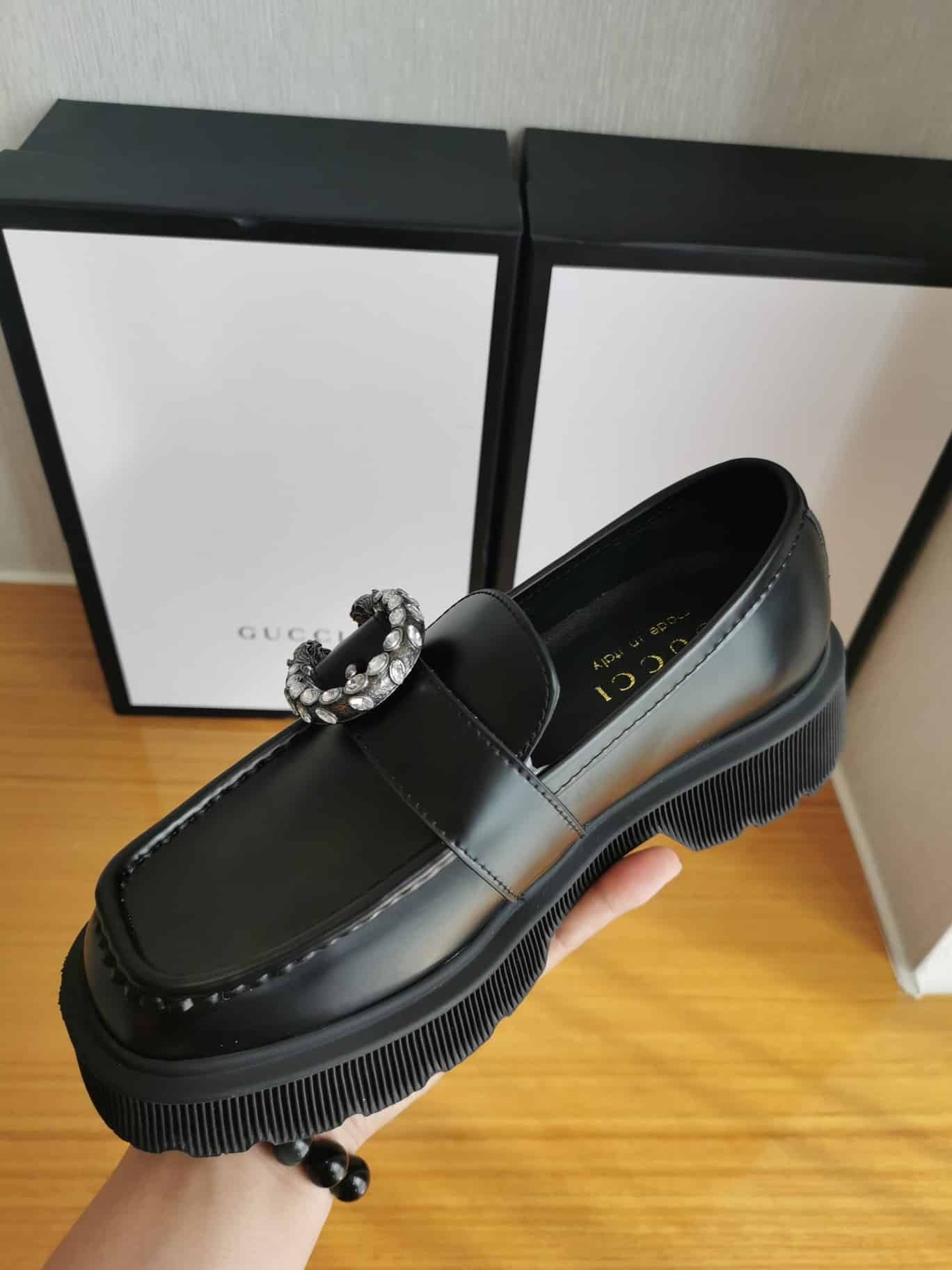 Gucci Wmns Leather Loafers Moccasins Double G Pink 602496 C9D00 5909