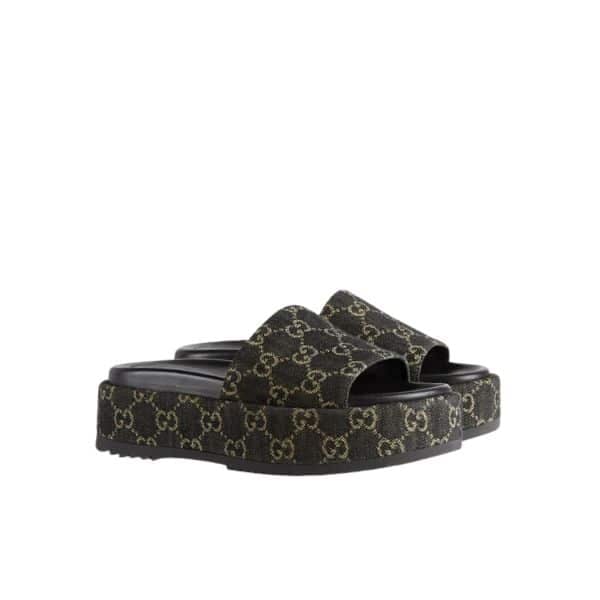 Gucci Women?S With Gg Pattern Slide Sandal Dark Blue