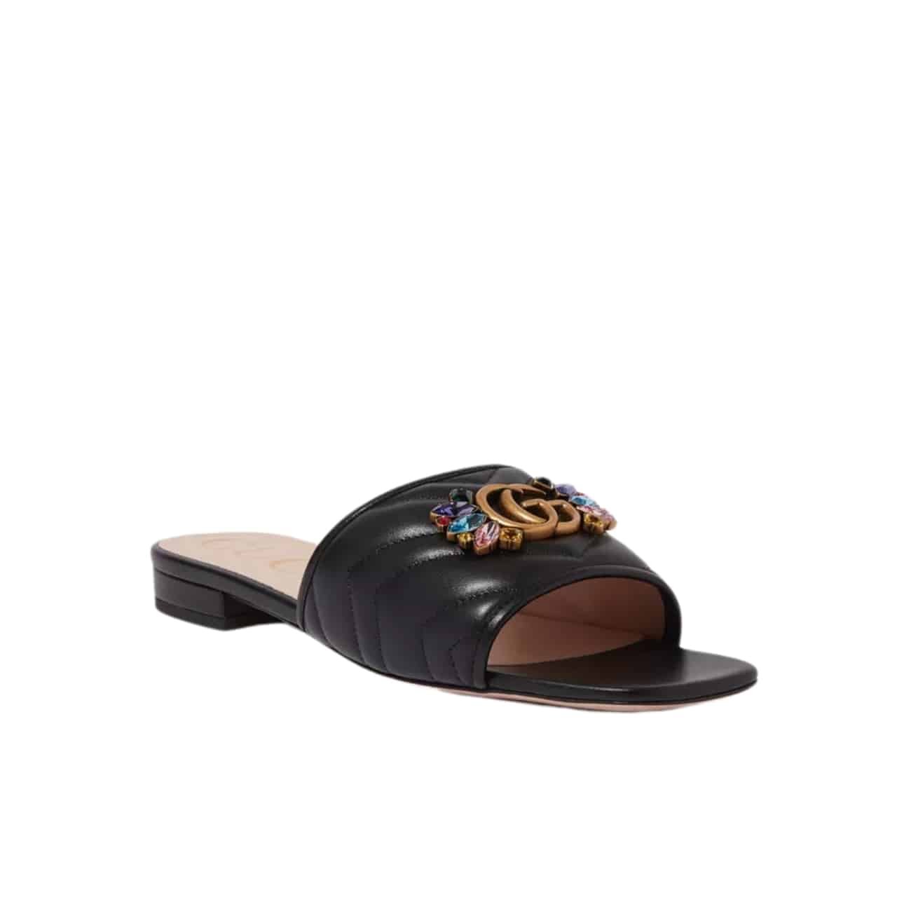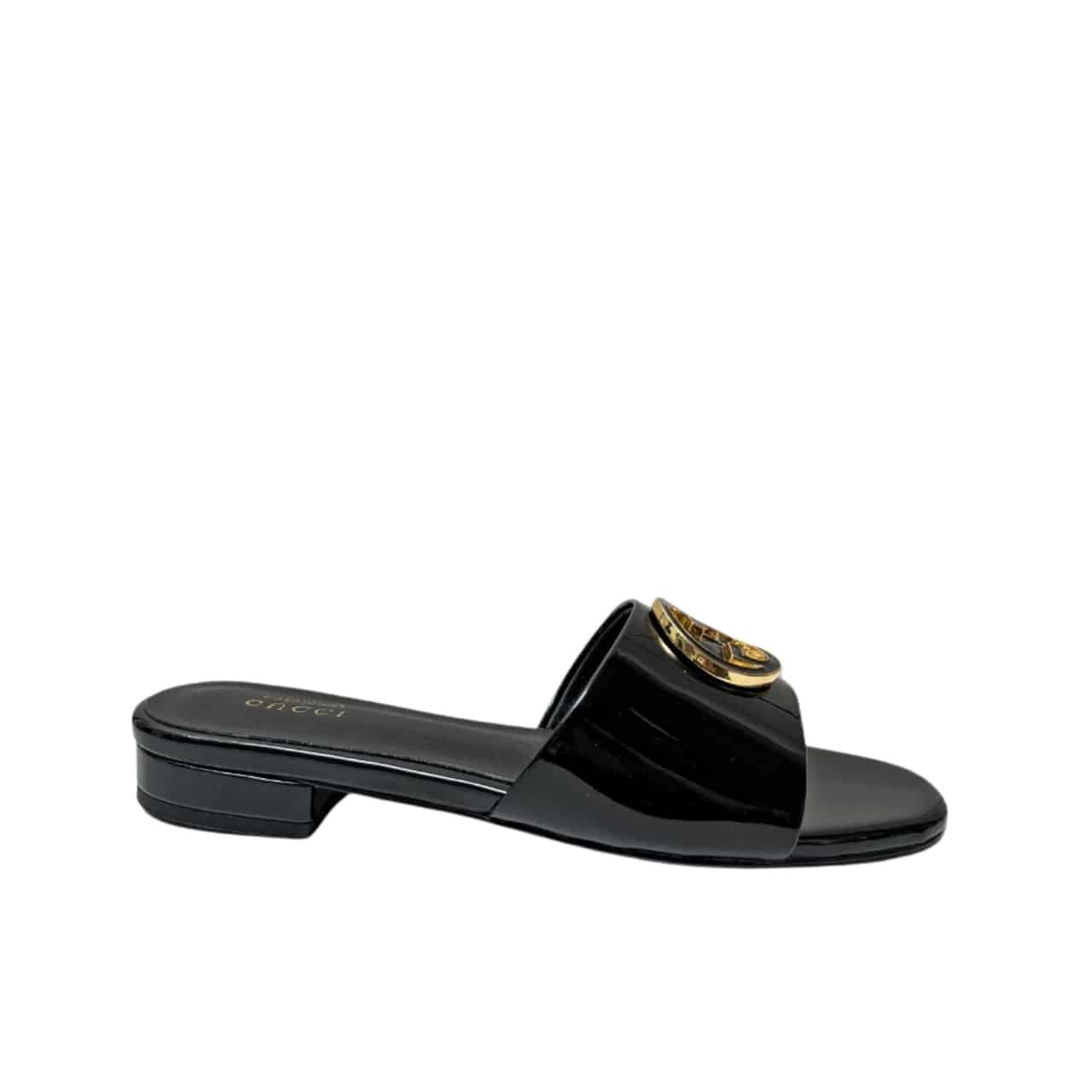 Gucci Women Slide Sandal With Double G Black 816330 Aaea2 1000