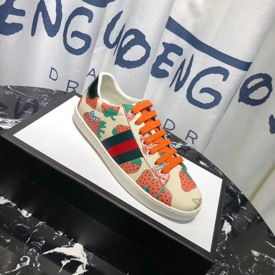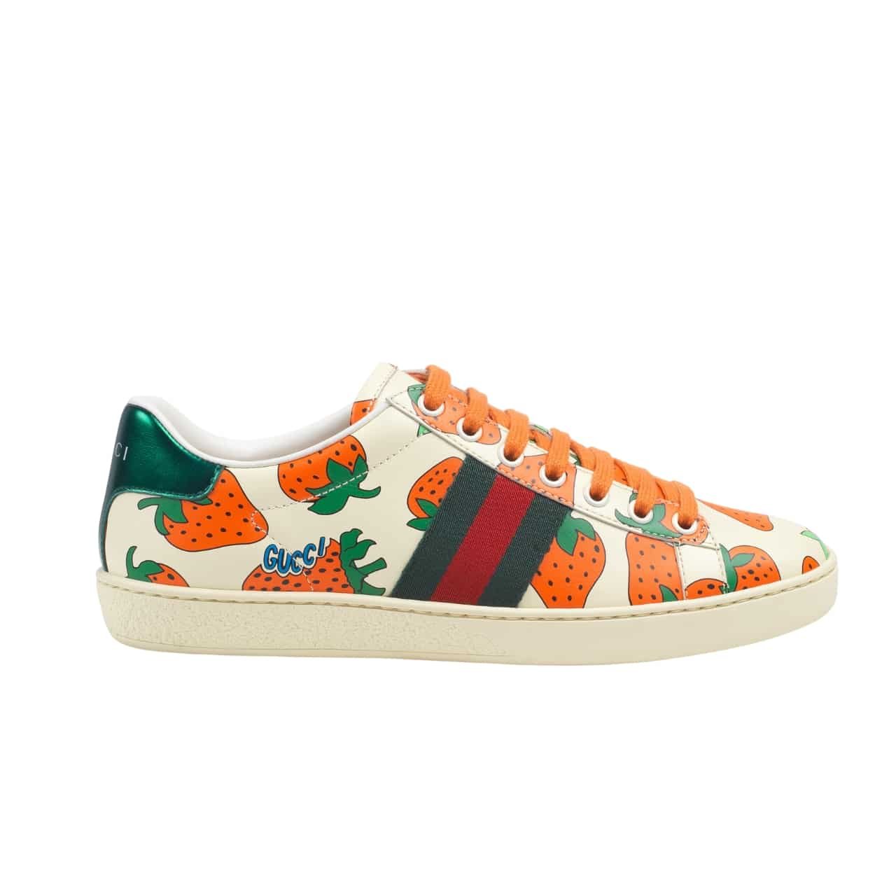 Gucci Ace Leather Sneaker With Strawberry Print 387993 08L30 9262