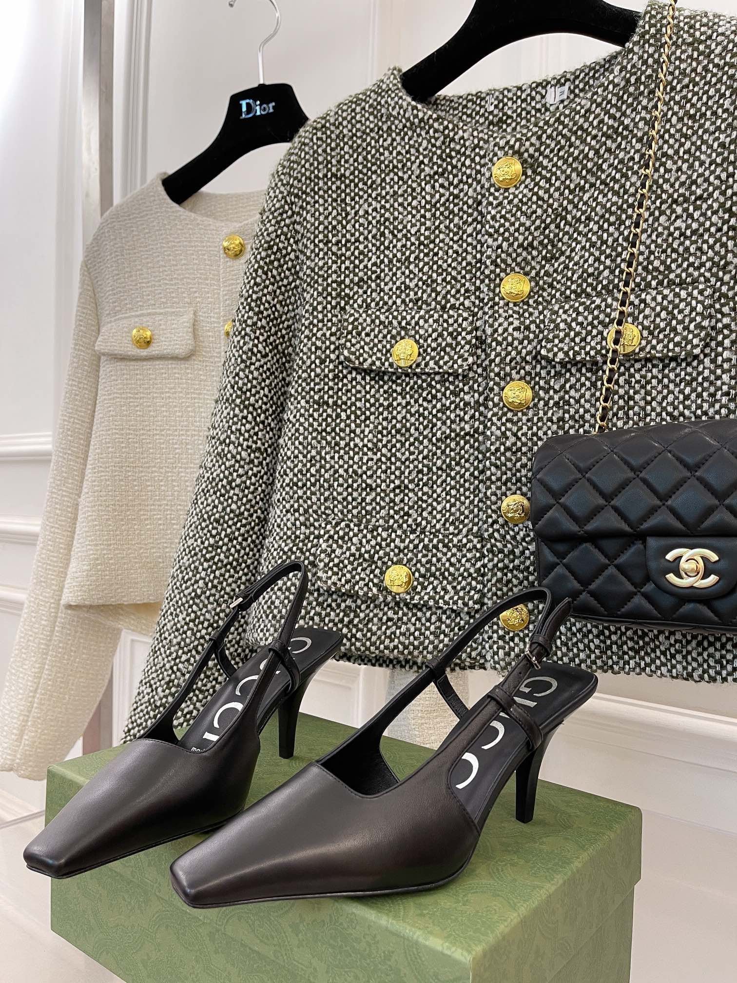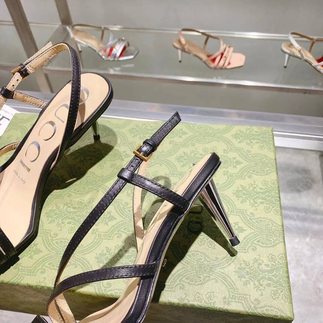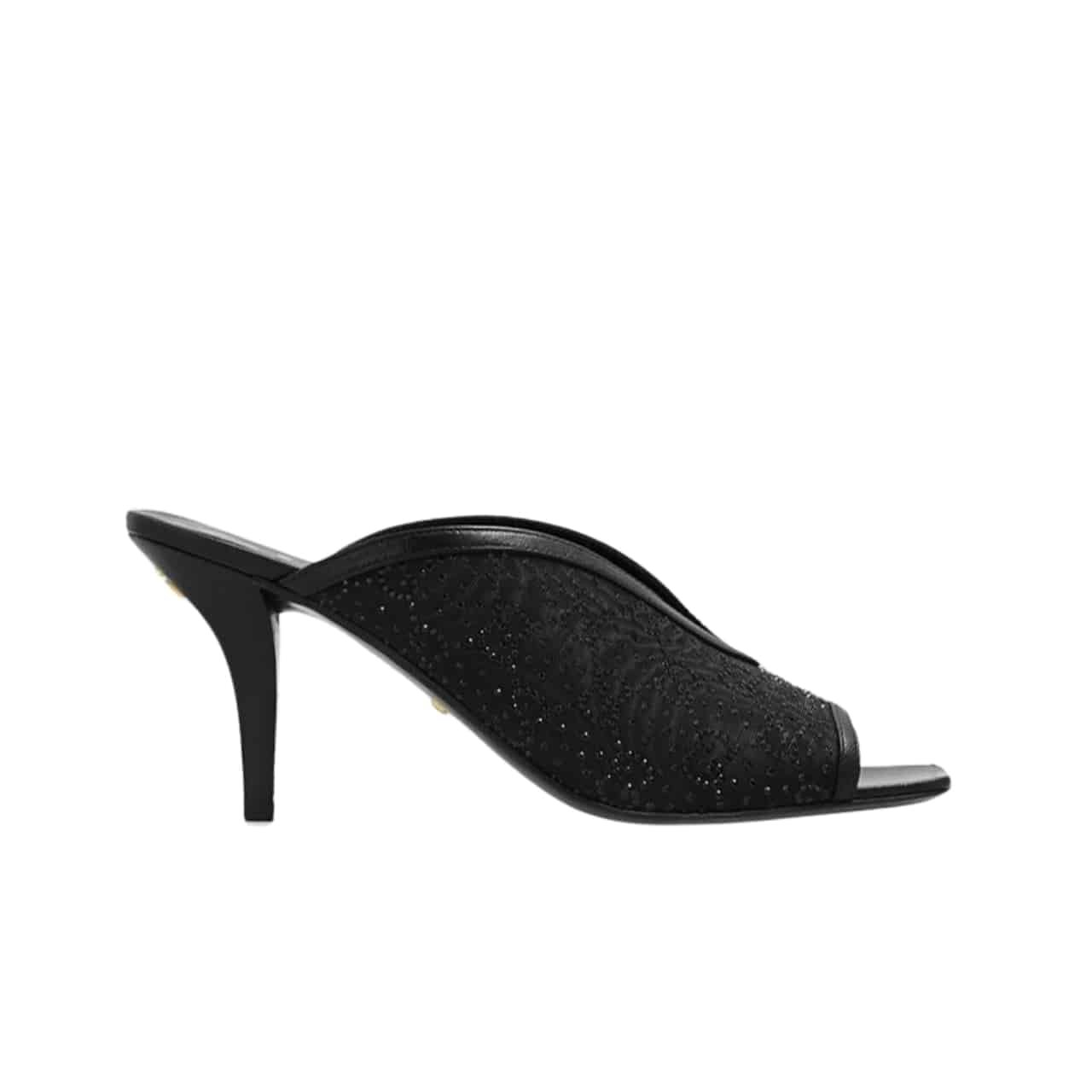 Gucci Chain Stiletto Heels Flip Flop Fish Mouth Mule Sandals Patel Pink
