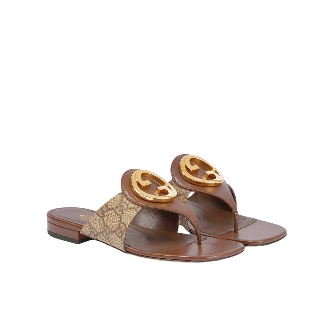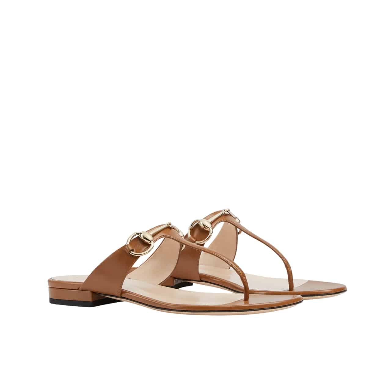 Gucci Women’S Thong Sandal With Horsebit Brown