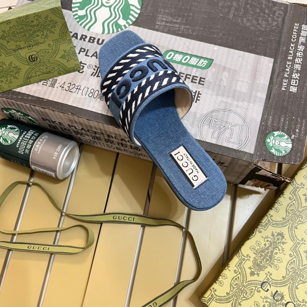 Gucci Women’S Slide Sandal With Gucci Script Light Blue Denim 771589 Fack3 4609
