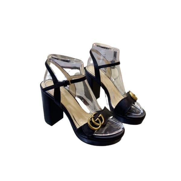 Gucci Gg Leather Heeled Sandal Black