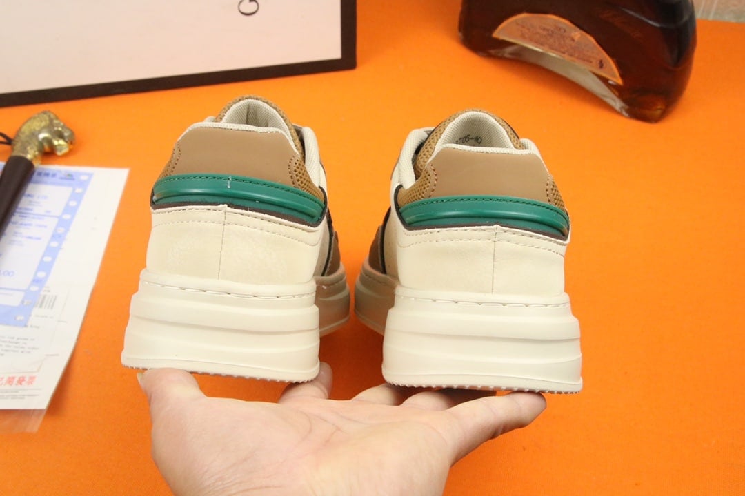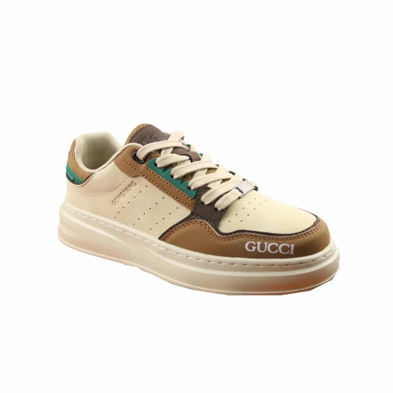 Gucci Gg Sneaker Leather In Beige And Green
