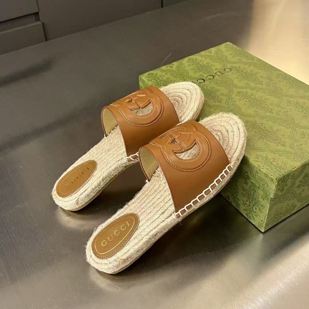 Gucci Interlocking G Cut Out Slide Espadrille Brown 725260 Us000 2535