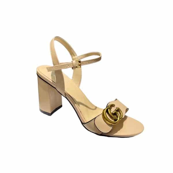Gucci Leather Mid Heel Sandal Beige
