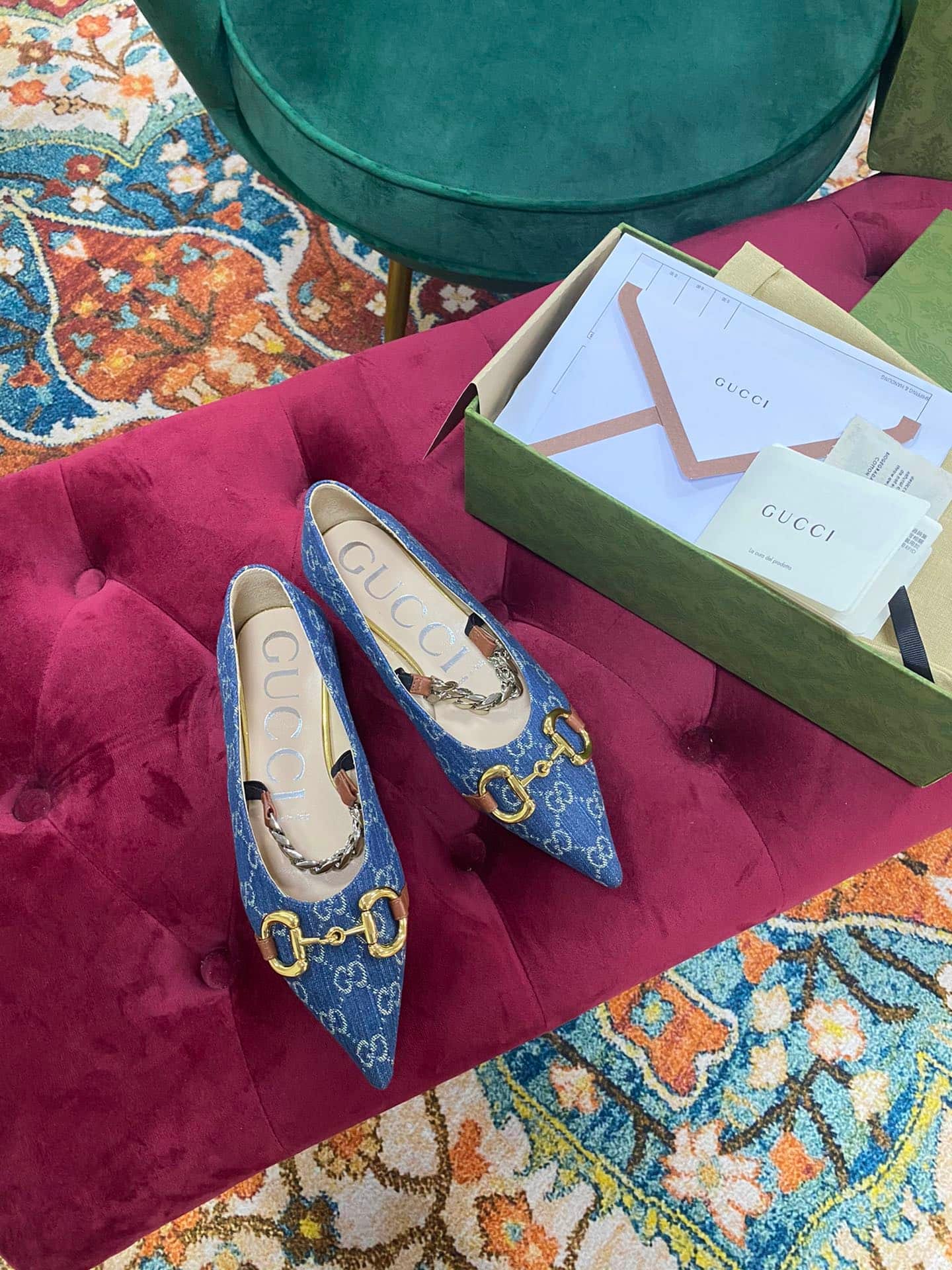 Gucci Gg Denim Series Women’S Horsebit Flat Ballet Shoes