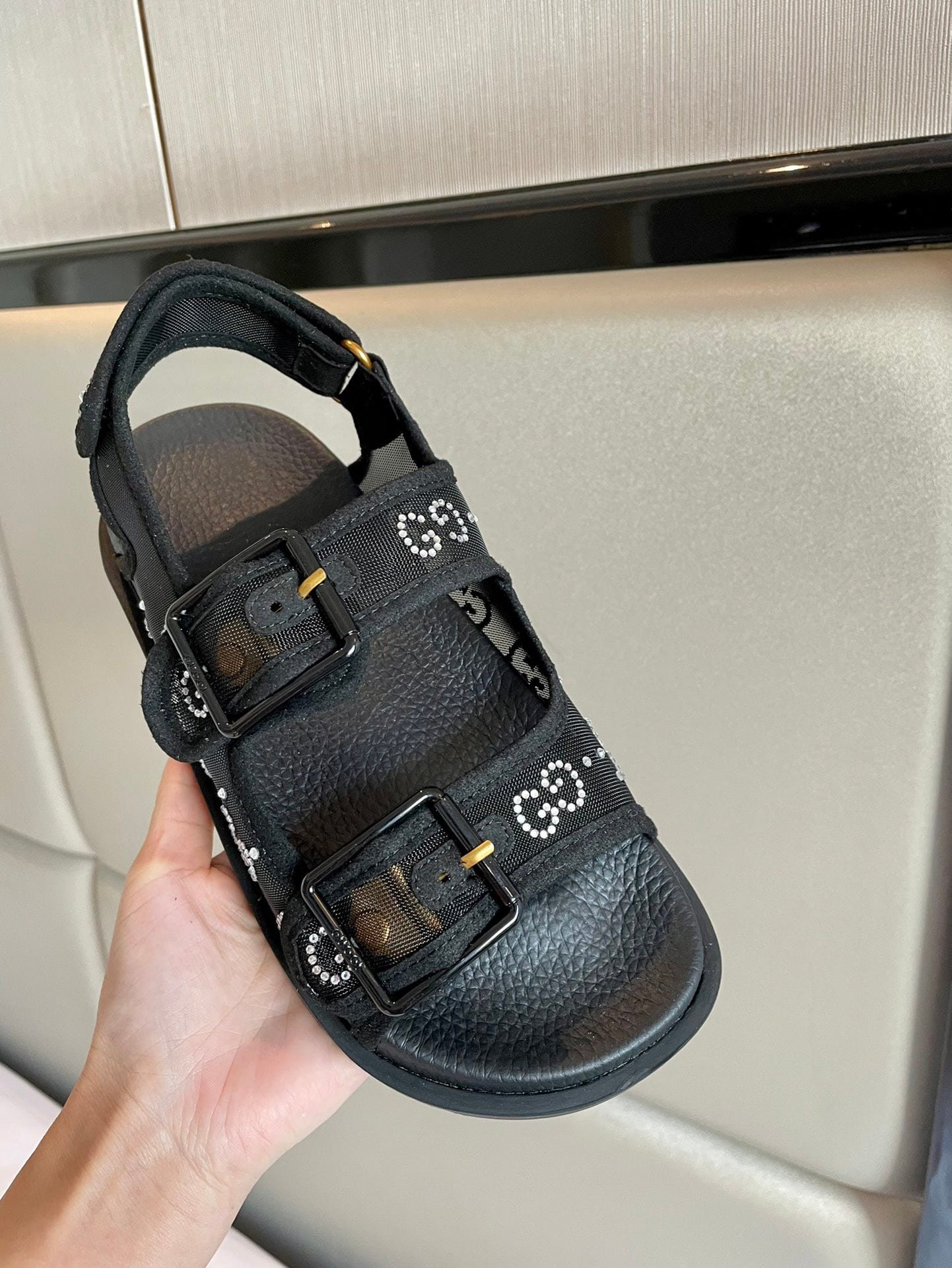 Gucci Gg Horizontal Strap Sandals With Tag In Grey