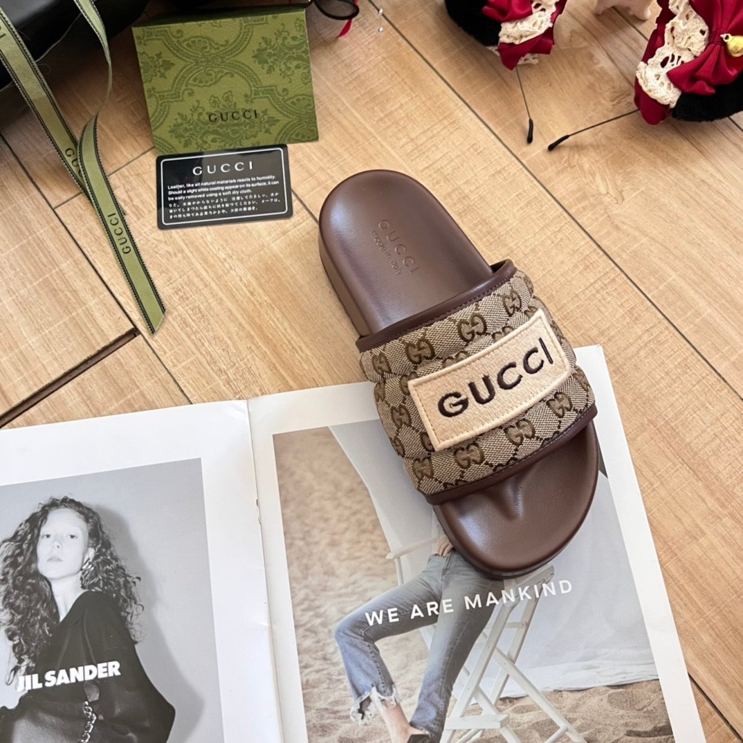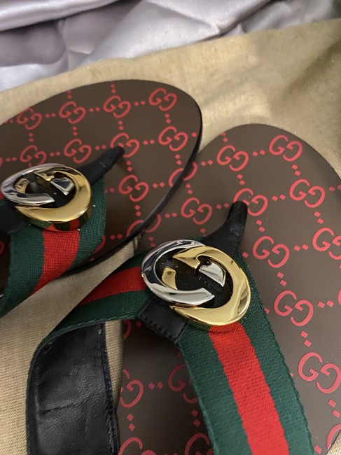Gucci Gg Horizontal Strap Sandals With Tag In Brown