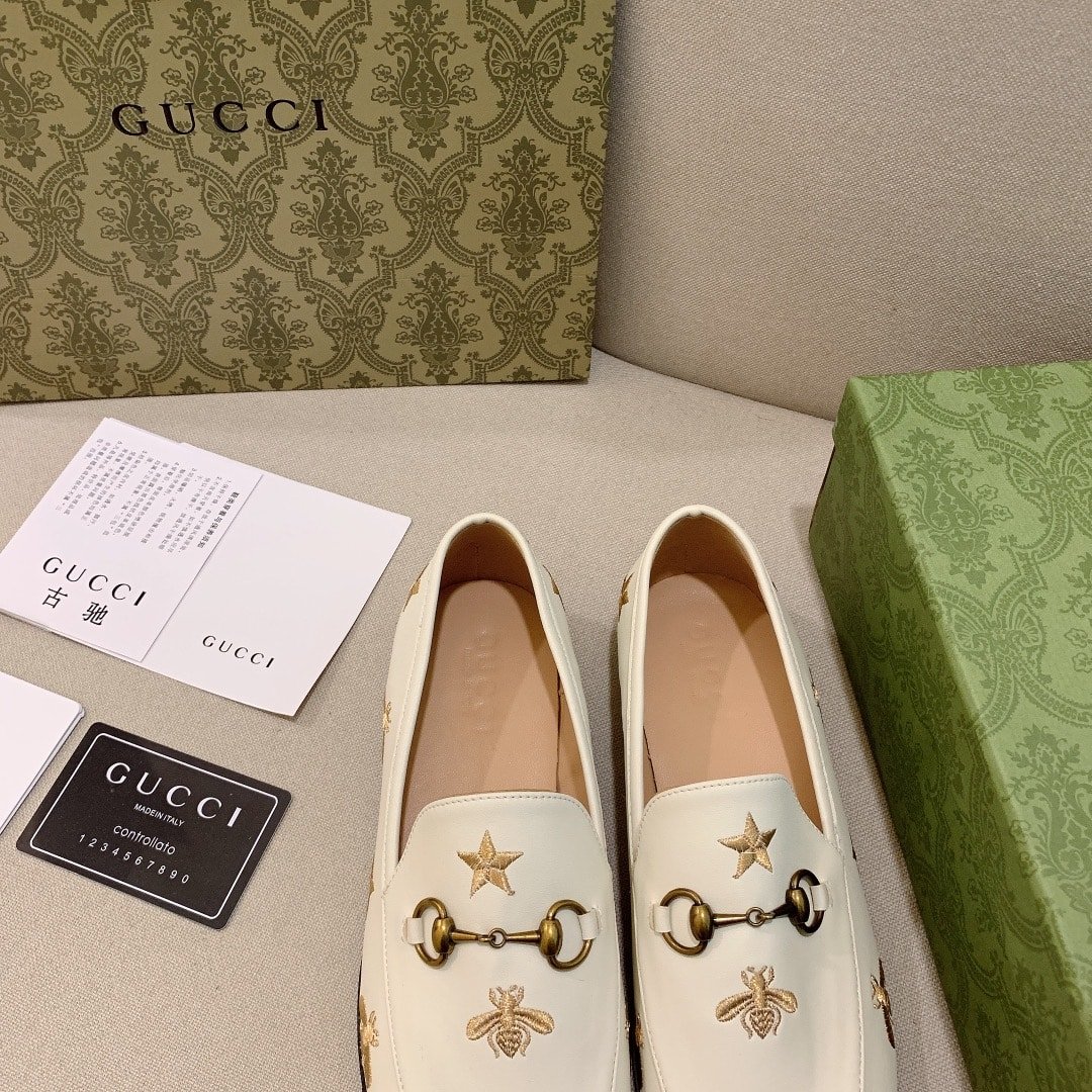 Gucci Jordaan Embroidered Bee And Starleather Loafer White