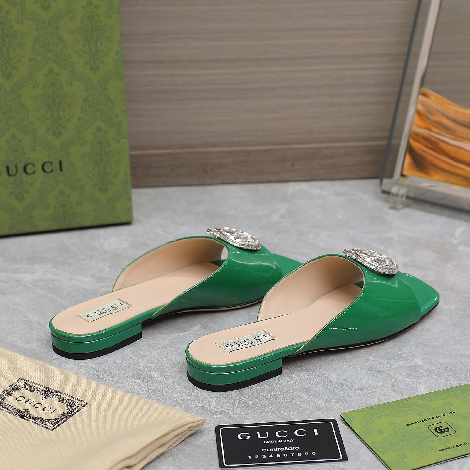 Gucci Gg Crystal Slippers Green