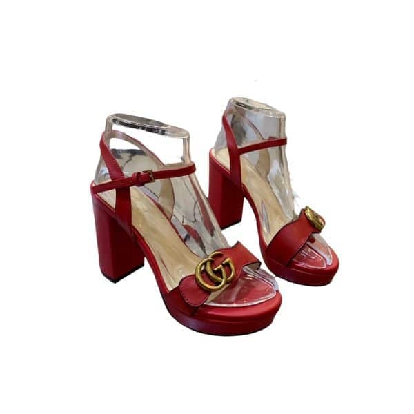 Gucci Gg Leather Heeled Sandal Red