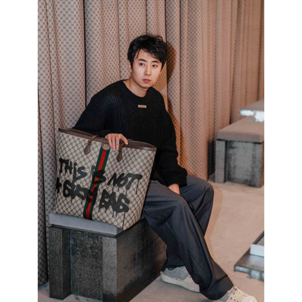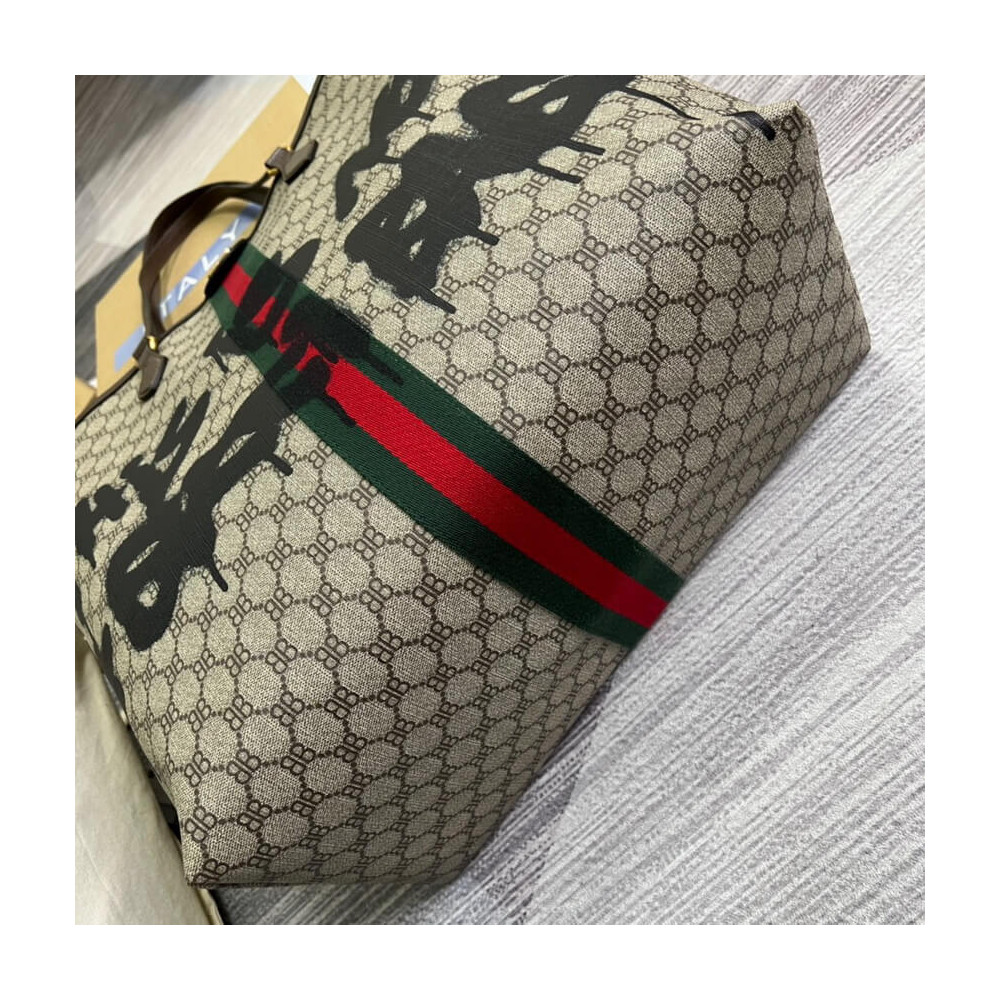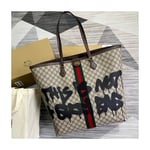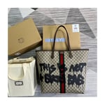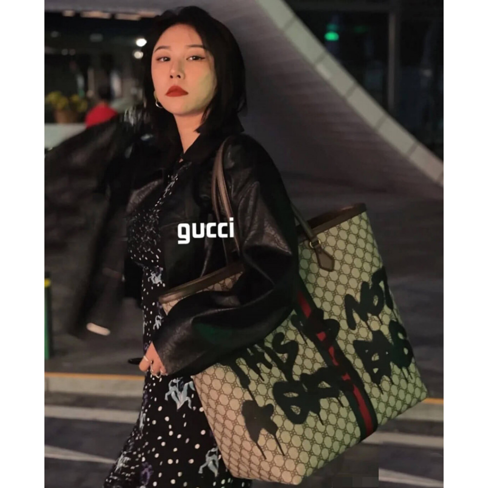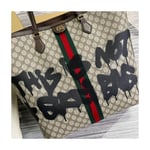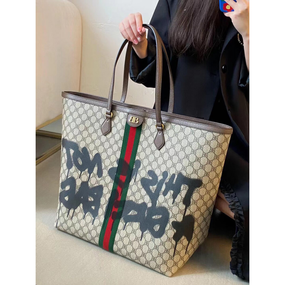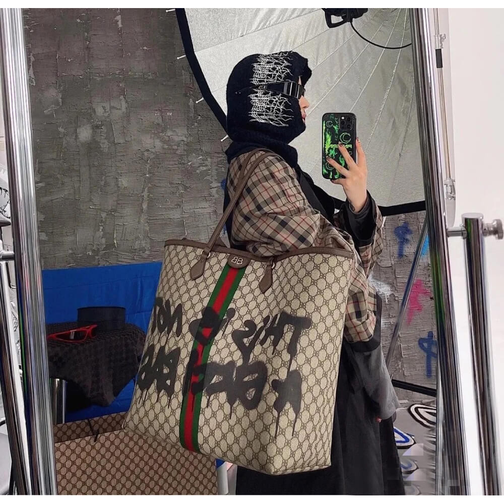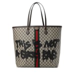 Hacker Graffiti Large Tote Bag in beige and brown coated canvas with aged gold hardware is from The Hacker Project.