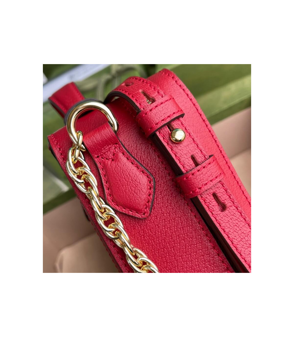 �C Adjustable chain and leather shoulder strap with 62cm drop