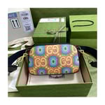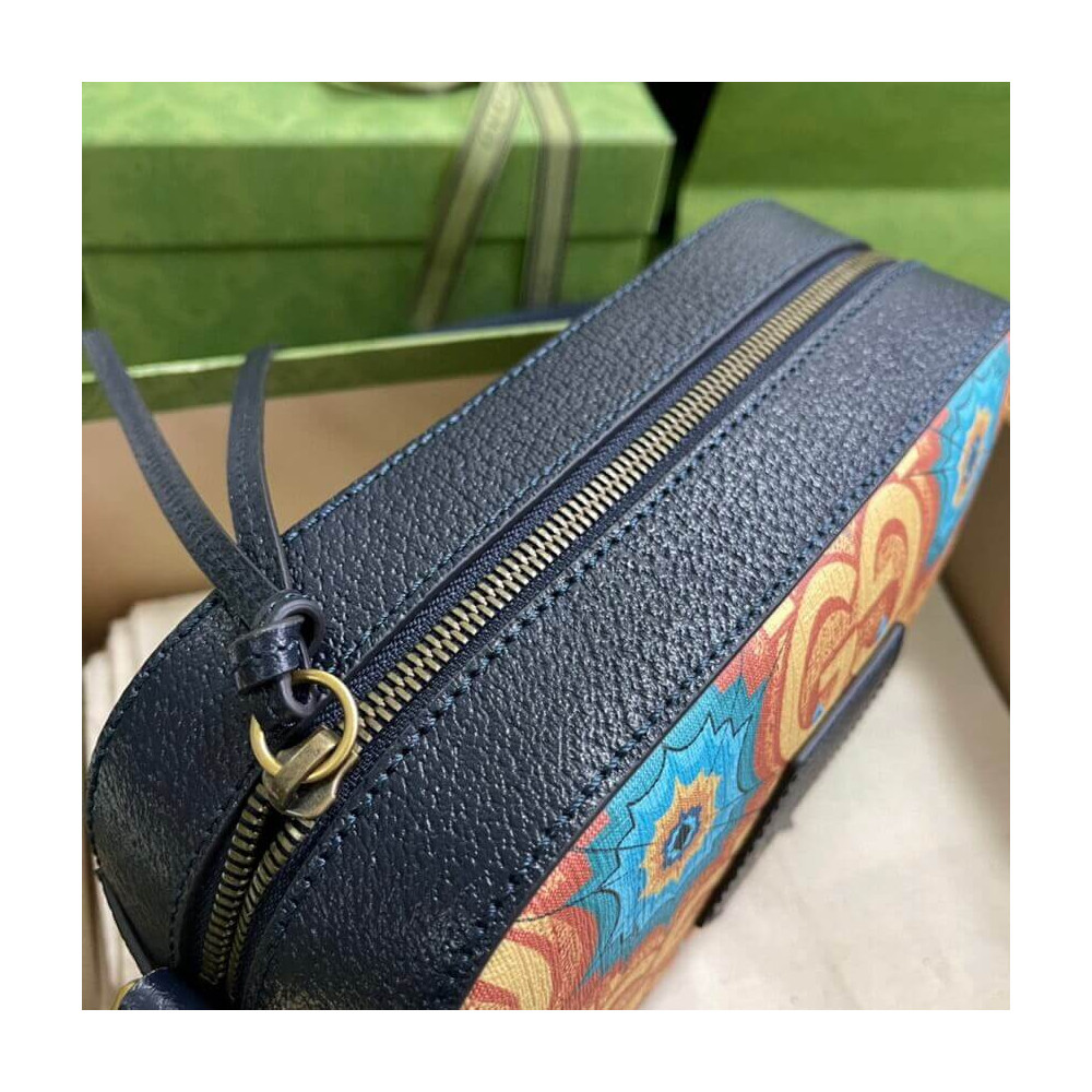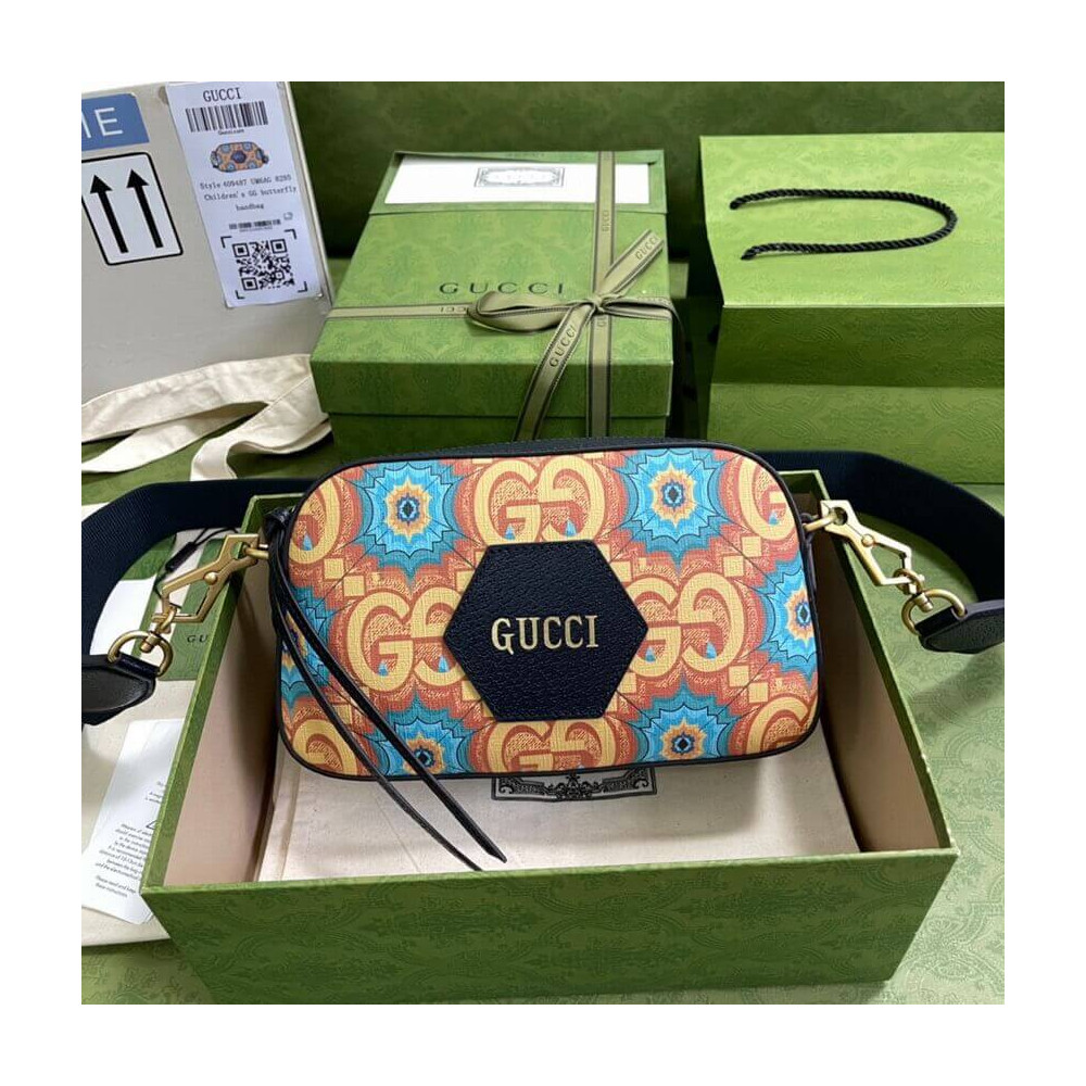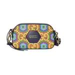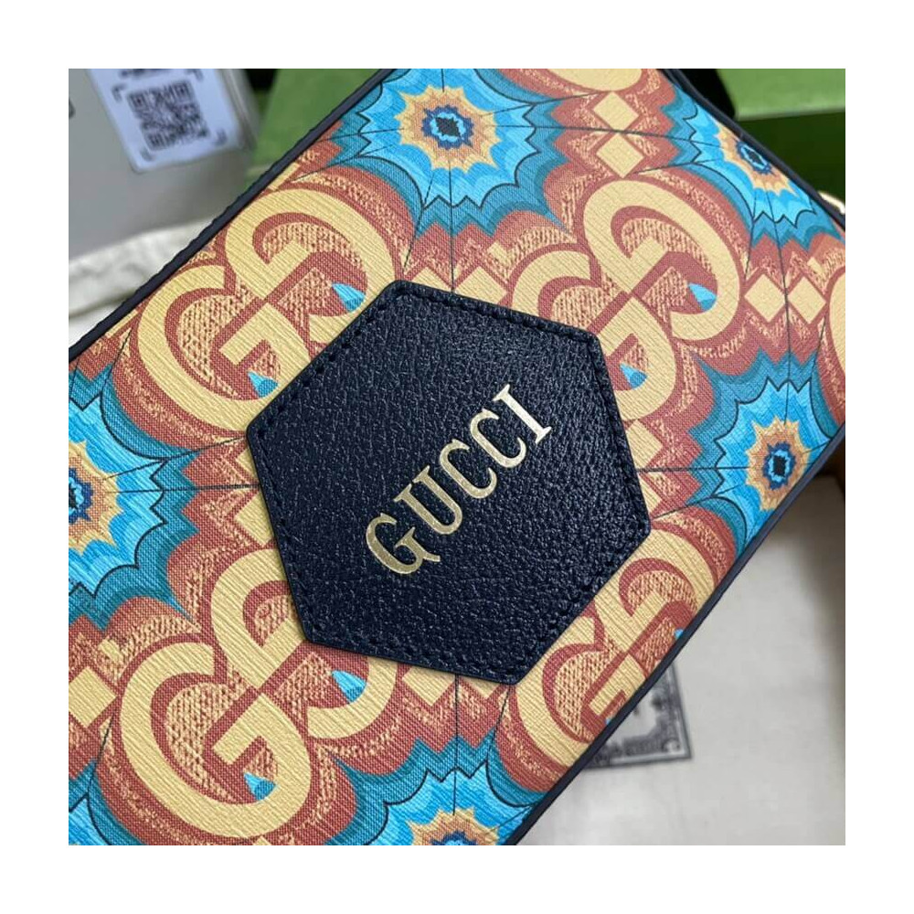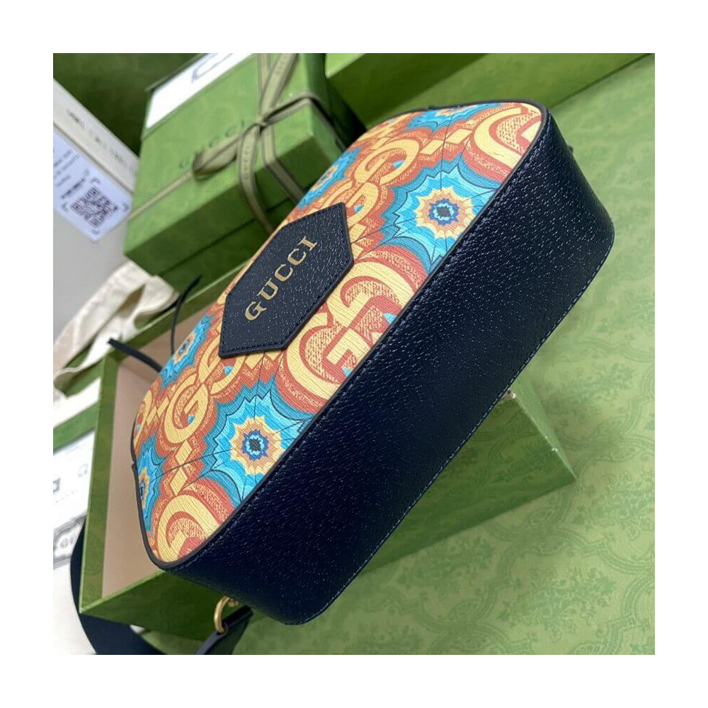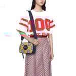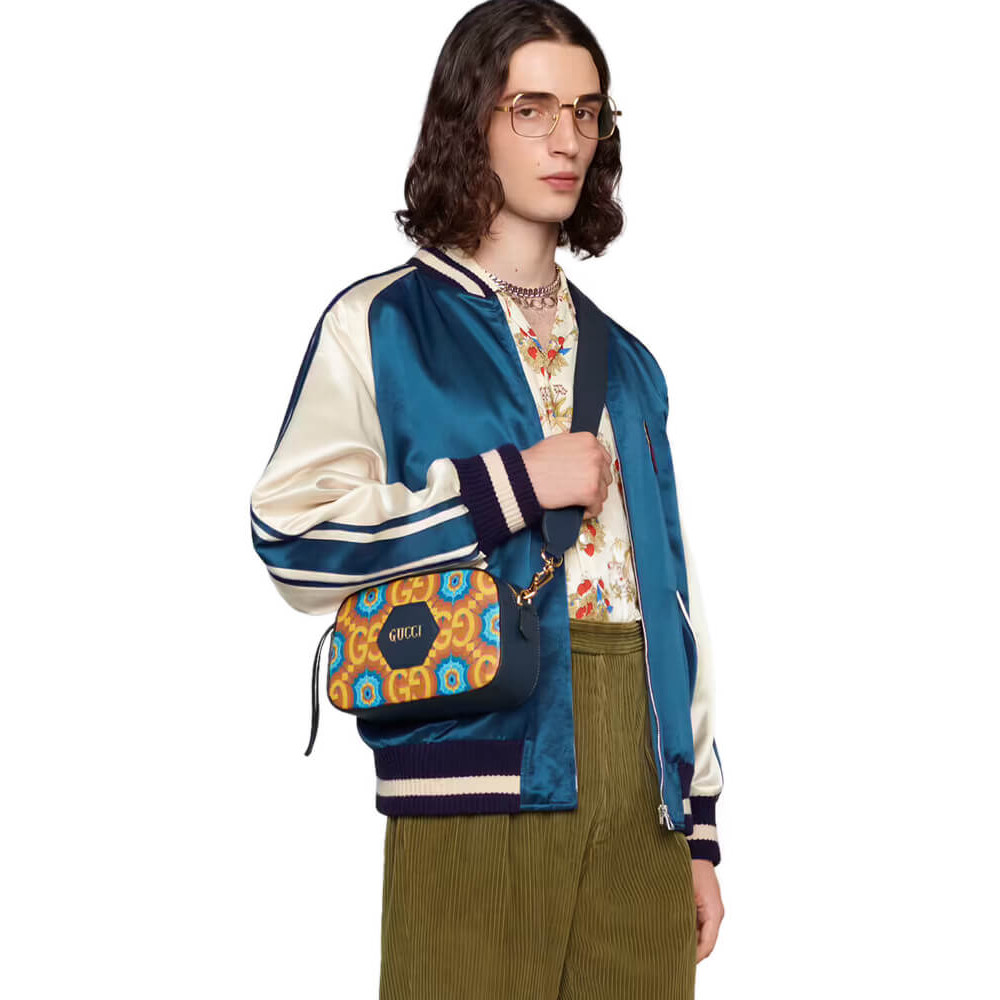 During its 100 years, Gucci has established itself as one of the most influential fashion houses. In honor of the Centennial, this messenger bag celebrates the House’s whimsical nature with a colorful print that mixes circles and GGs to create a playful kaleidoscope effect. A leather detail with the Gucci Script logo completes the style.