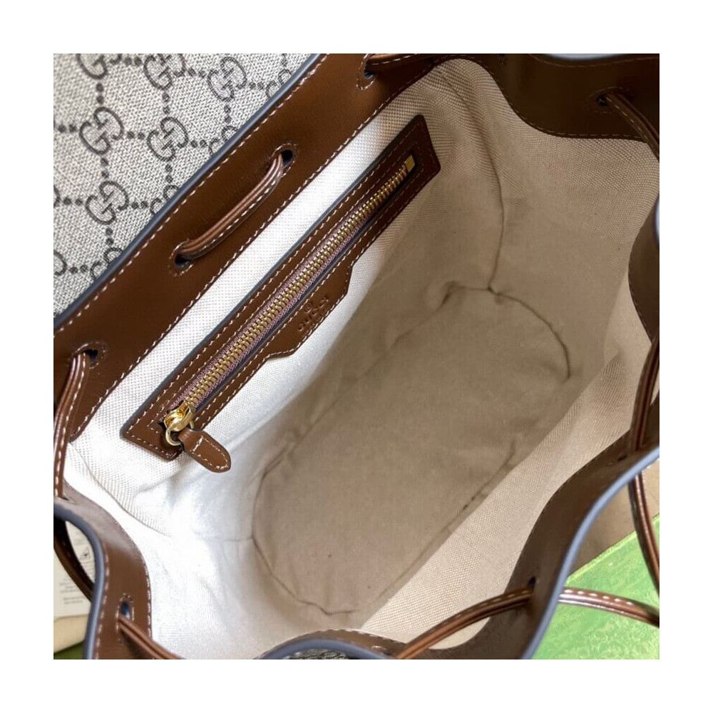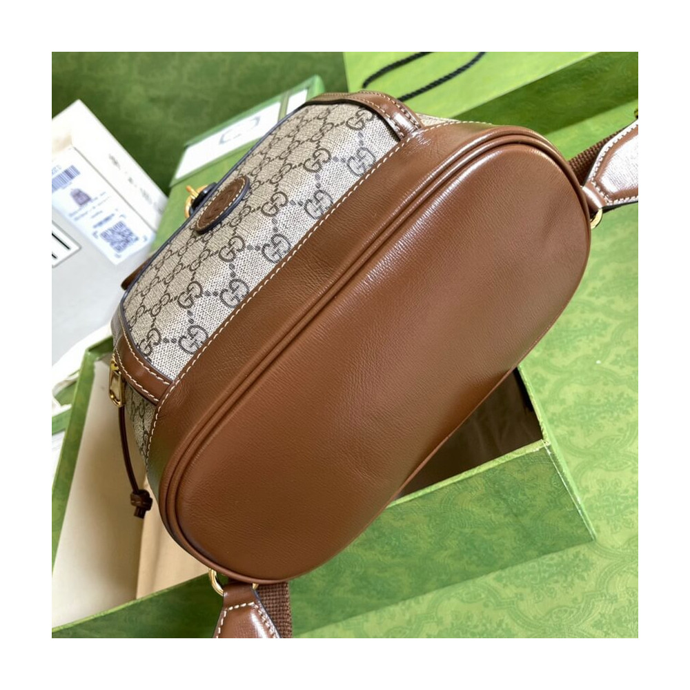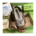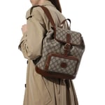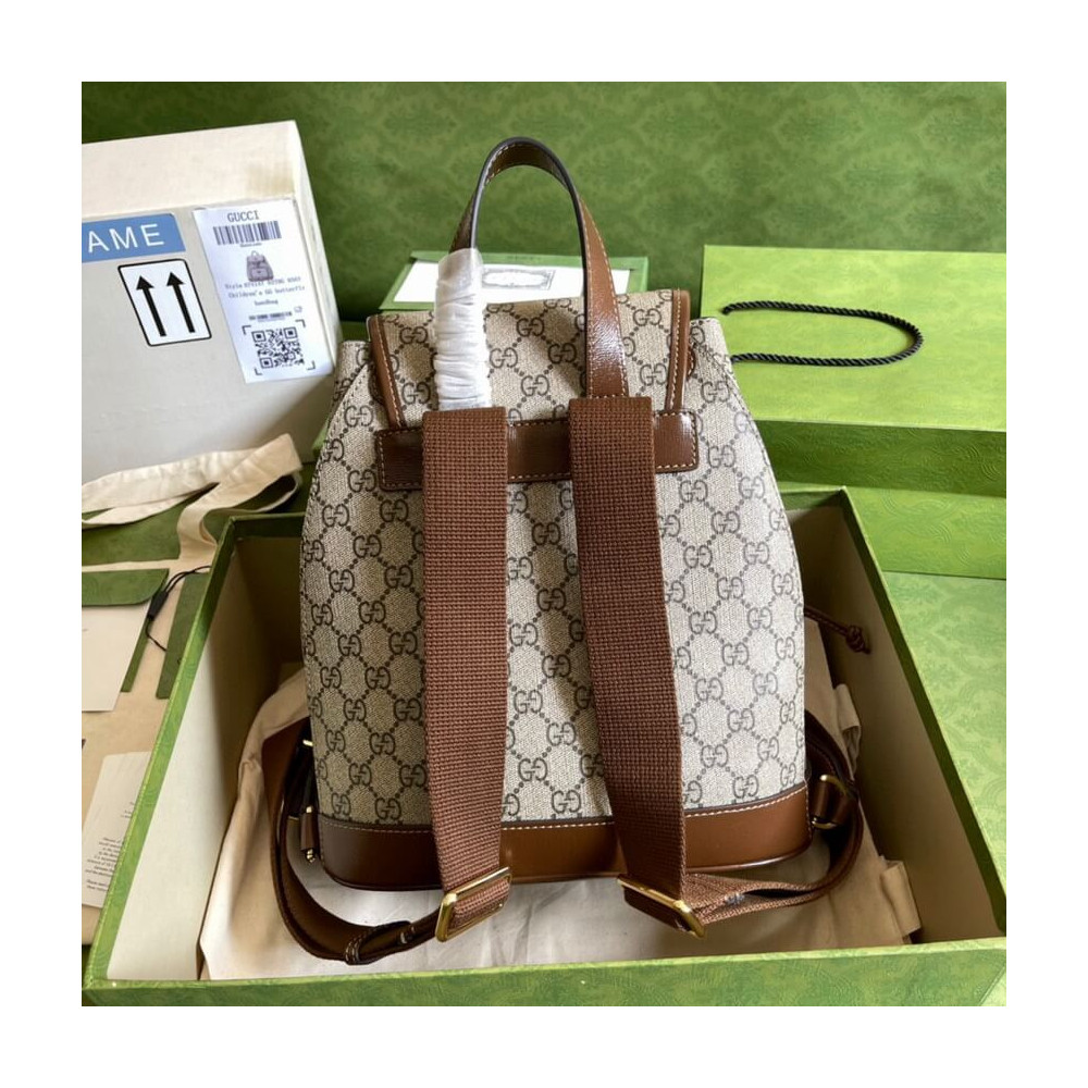 Materials, colors and House codes come together to infuse styles with a vintage feel. Here, this backpack is crafted from beige and ebony GG Supreme canvas with a brown leather trim. The style is completed by one of Gucci’s most historic codes―the Interlocking G.