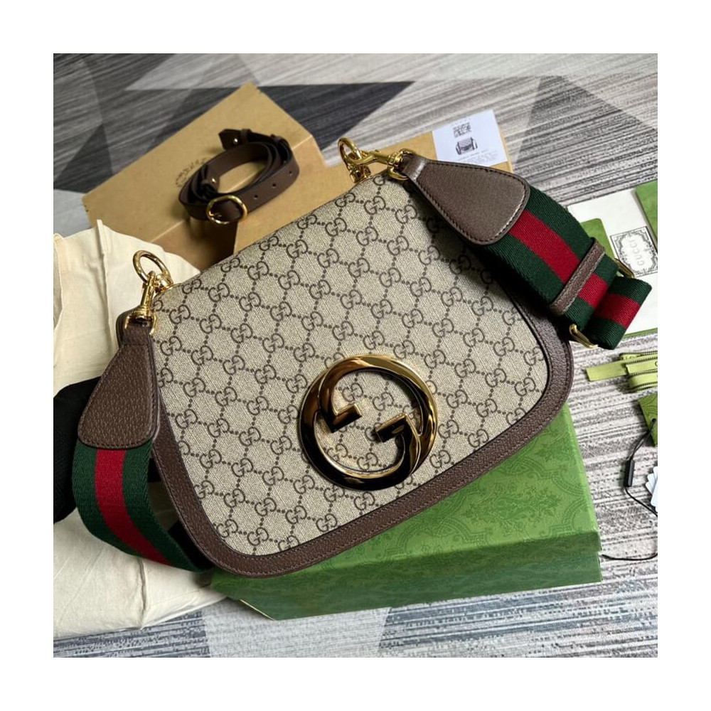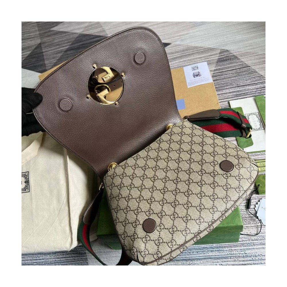 Inspired by a piece from the archives, this medium-sized shoulder bag is distinguished by the round Interlocking G. The accessory continues to pay homage to Gucci’s heritage with its allover monogram motif. This item is part of Gucci’s MX, a selection that embraces freedom of expression and explores identity norms.