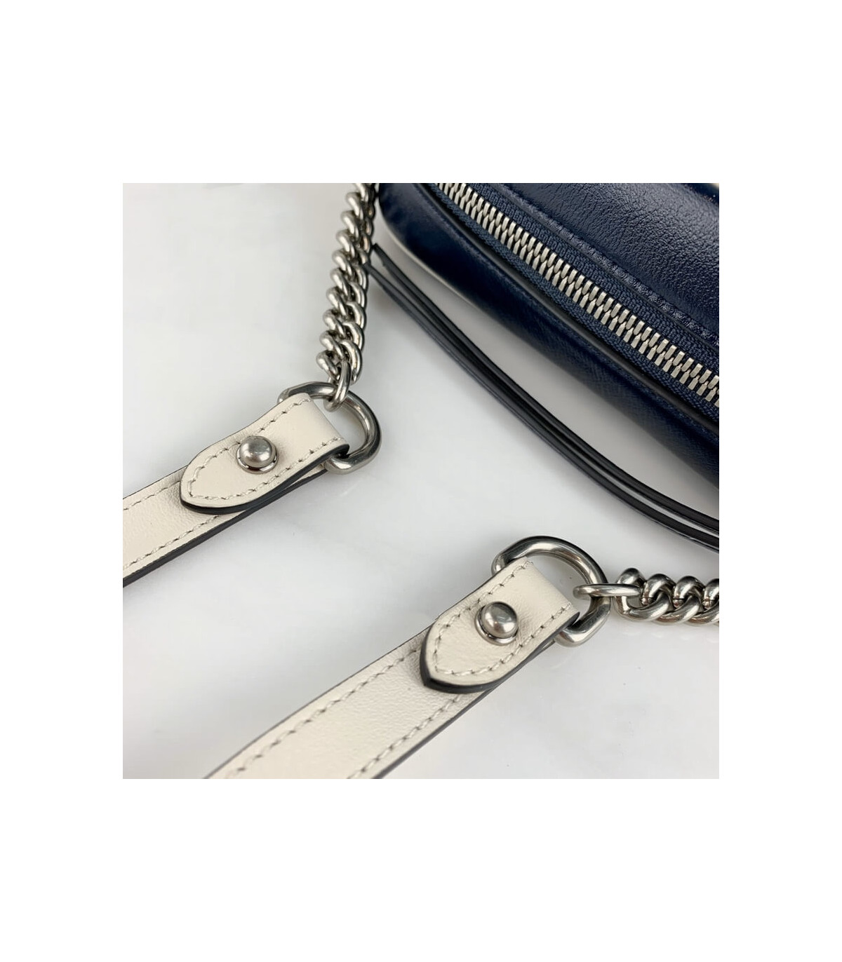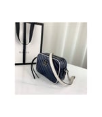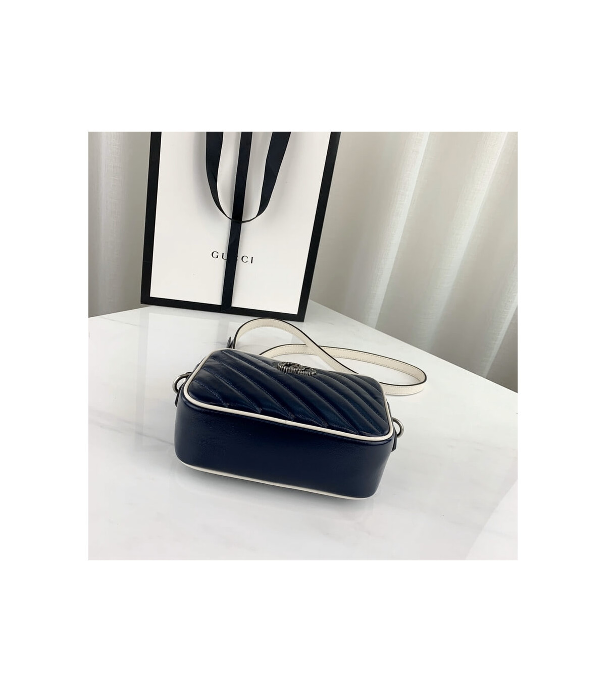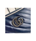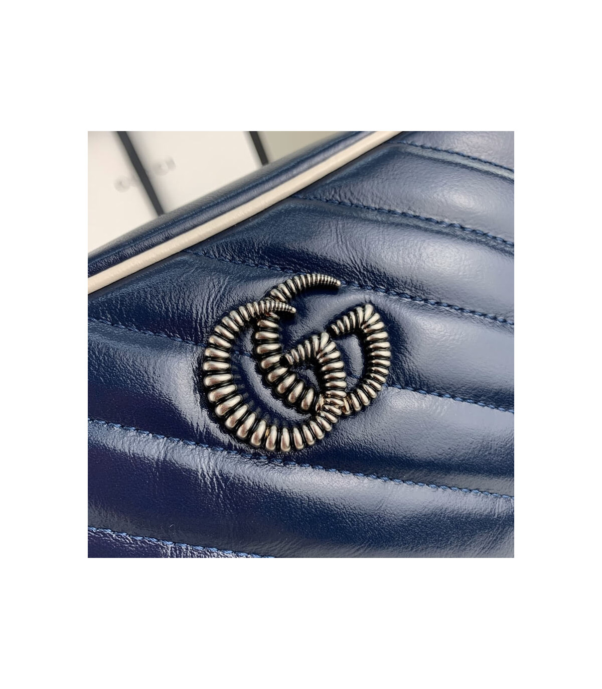 The mini GG Marmont chain shoulder bag has a softly structured shape and a zip top closure with Double G hardware. The chain shoulder strap has a leather shoulder detail. Made in matelassé leather with a chevron design and GG on the back.