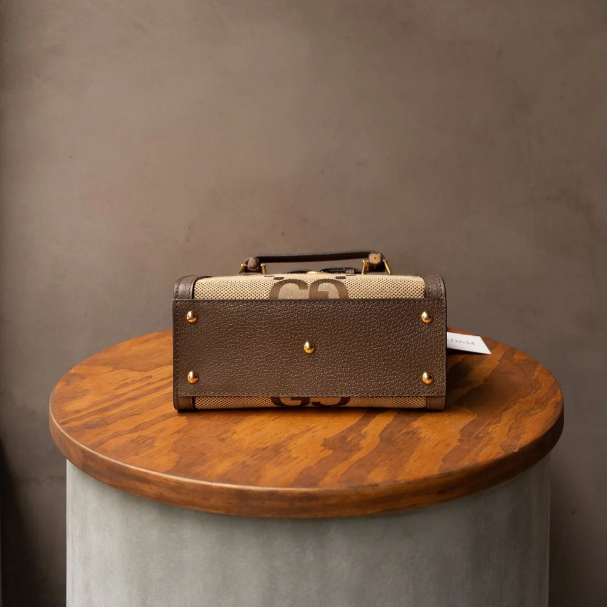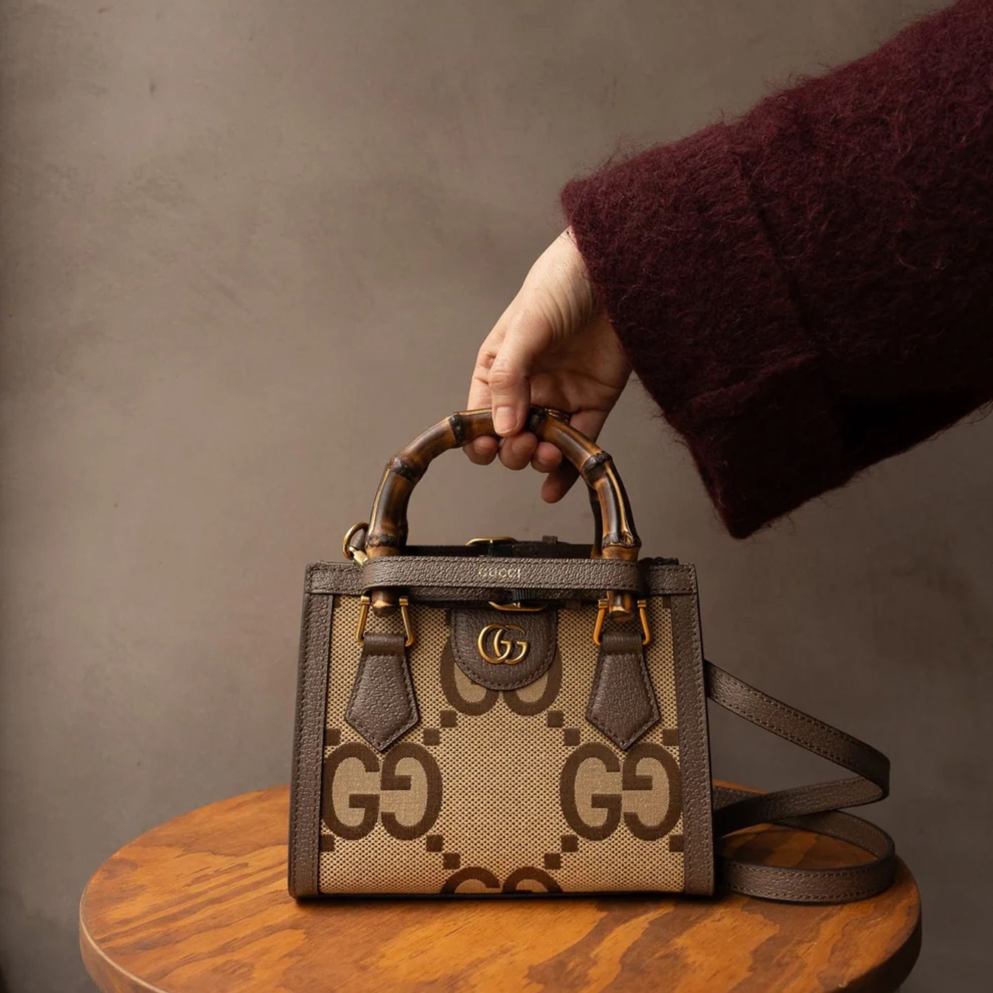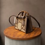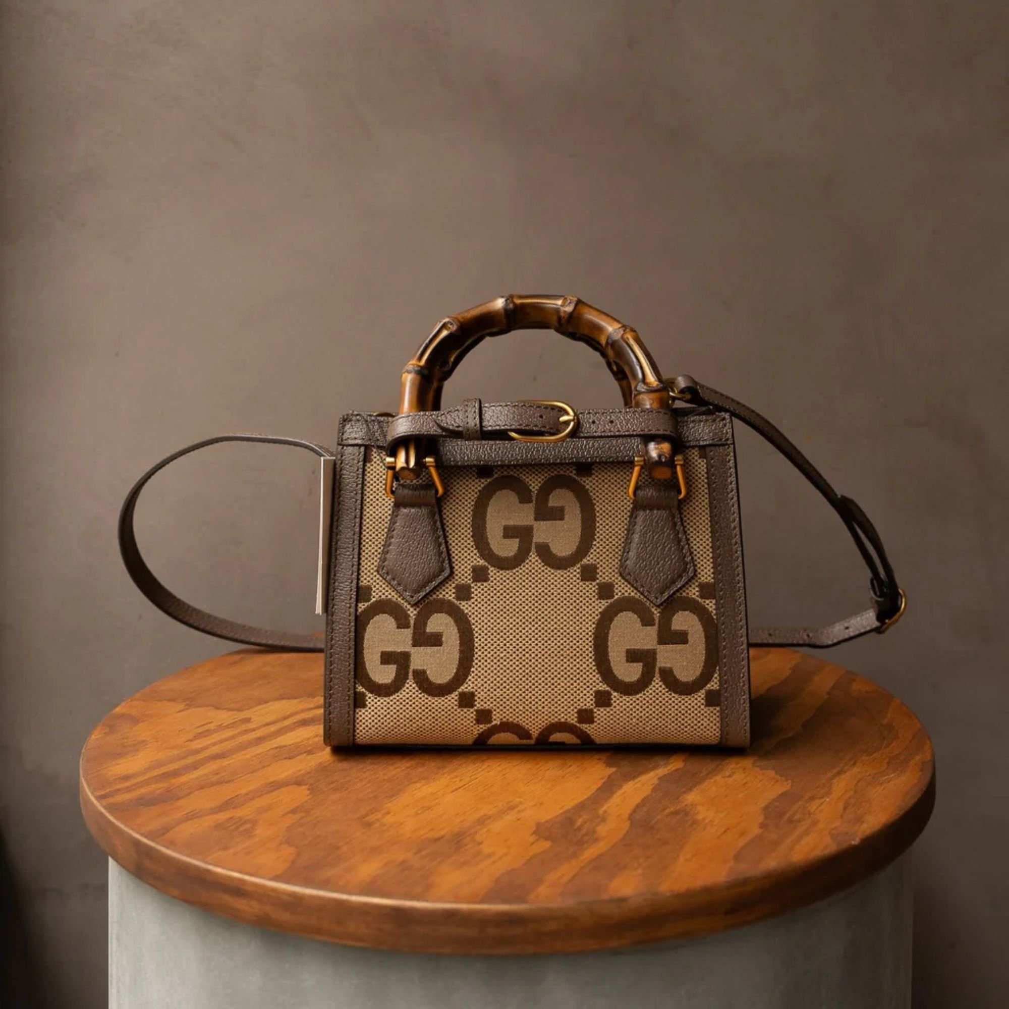 • Gucci Diana Jumbo GG Mini Tote Bag Camel Brown Canvas 20cm