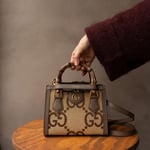 Gucci Diana Jumbo GG Mini Tote Bag Camel Brown Canvas 20cm