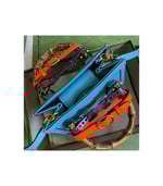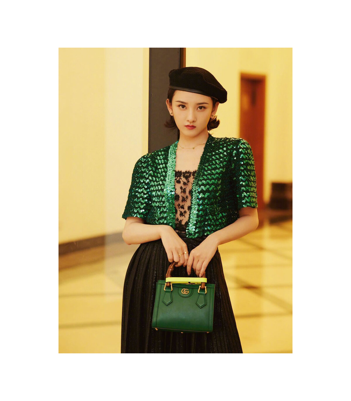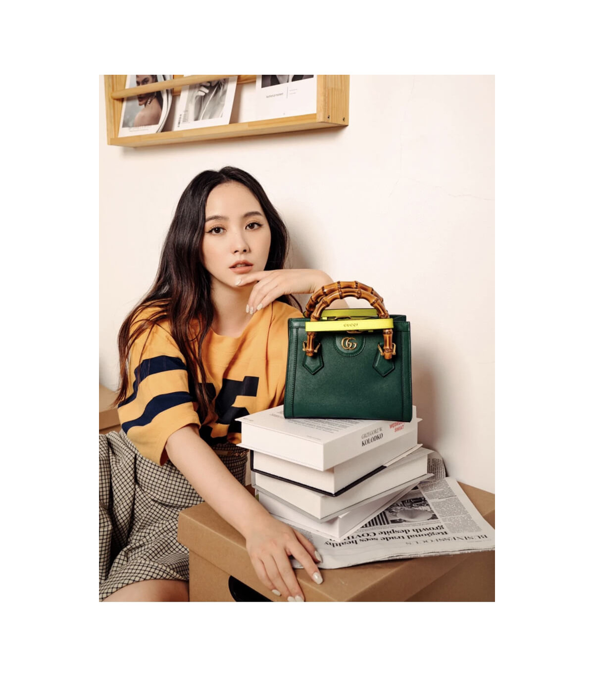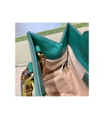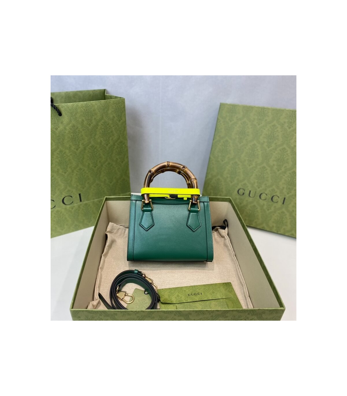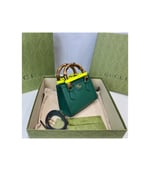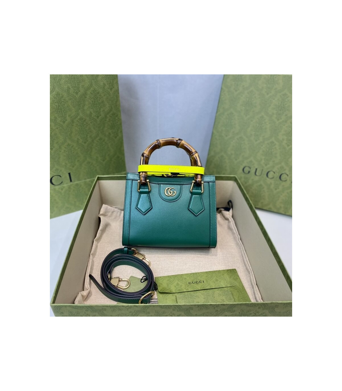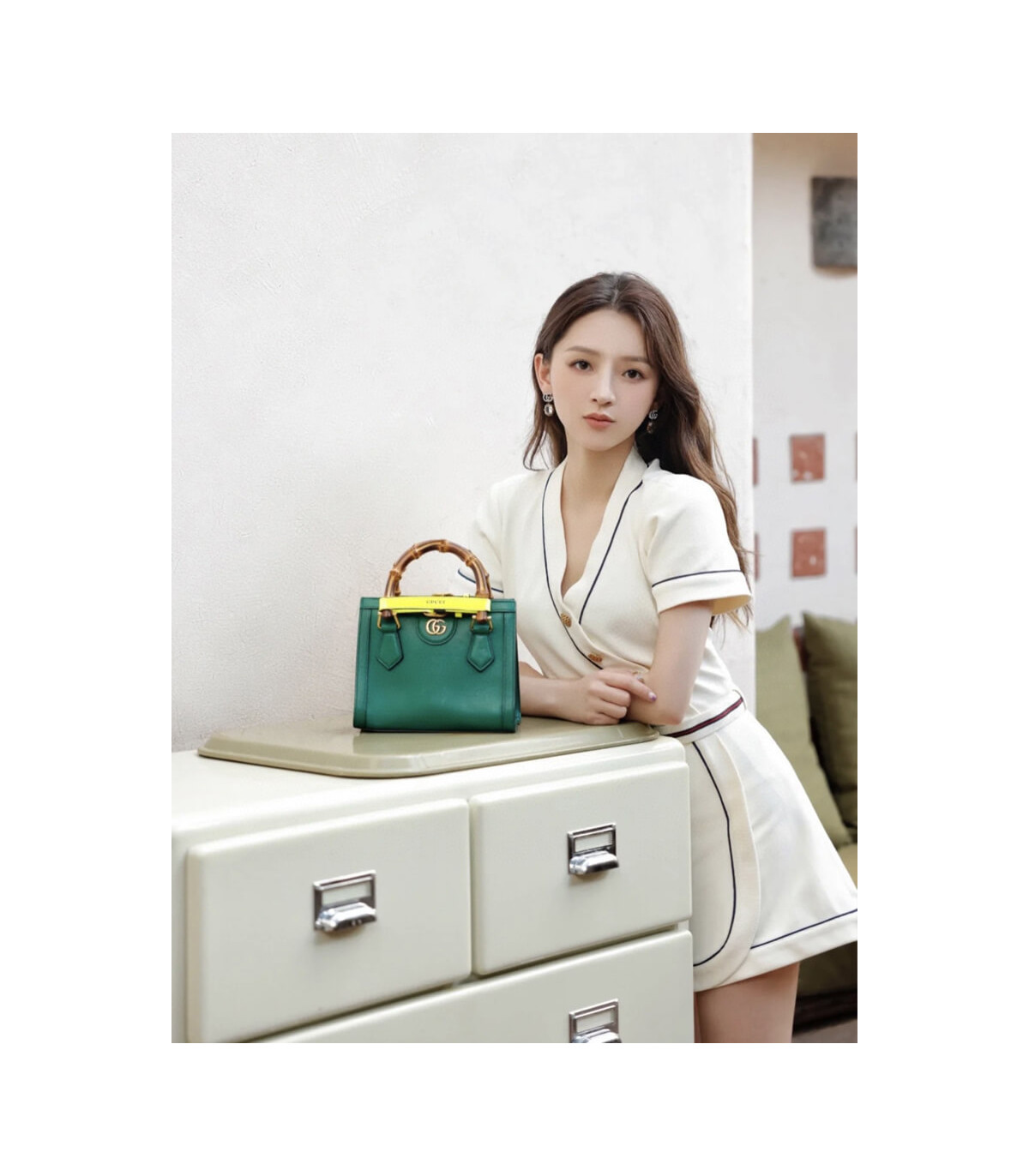 Combining recognizable elements of the House, the mini tote bag is defined by its bamboo handles and Double G hardware. Crafted from light blue leather, the accessory is further accentuated by two neon bands, a playful reference to the bands used to keep handles in shape.