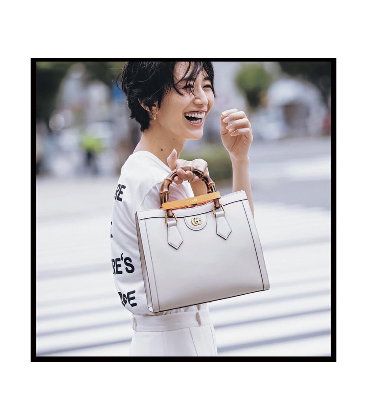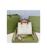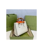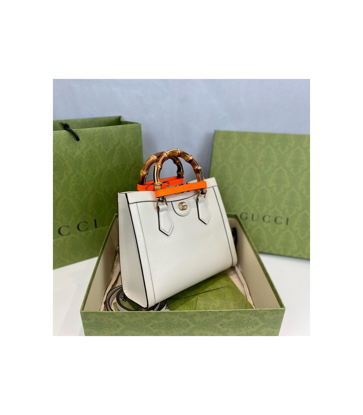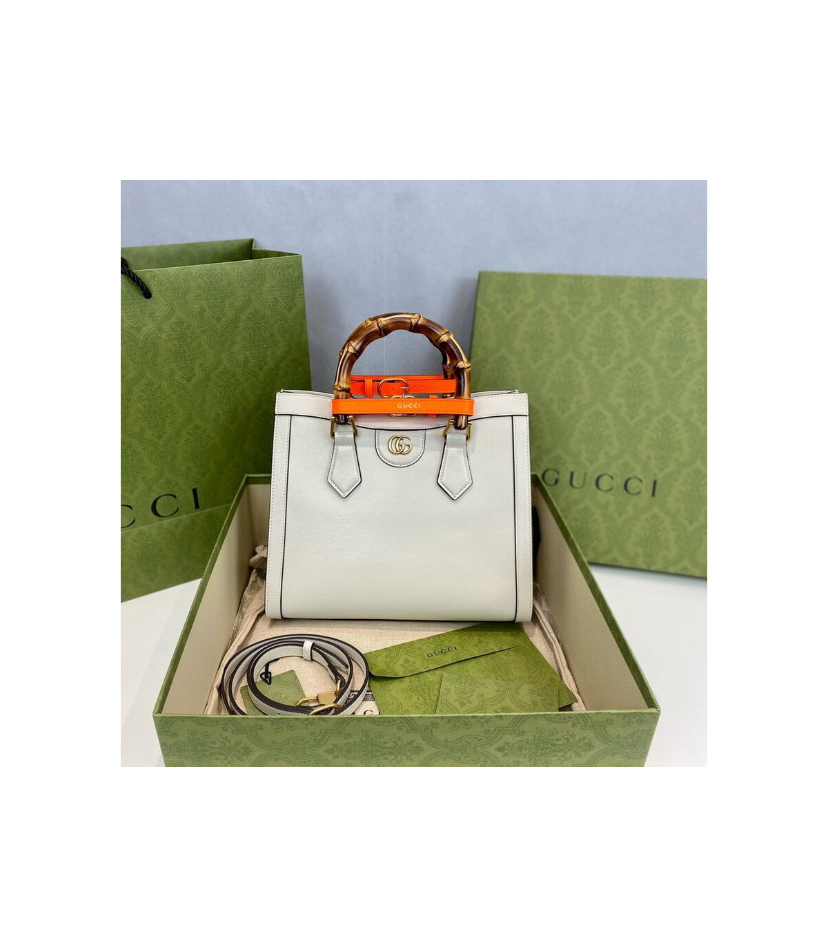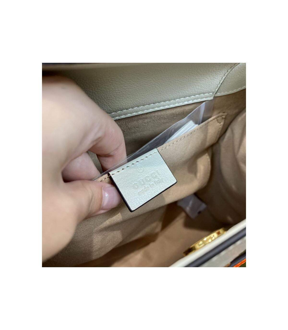 Combining recognizable elements of the House, the small tote bag is defined by its bamboo handles and Double G hardware. Crafted from black leather, the accessory is further accentuated by two neon bands, a playful reference to the bands used to keep handles in shape.