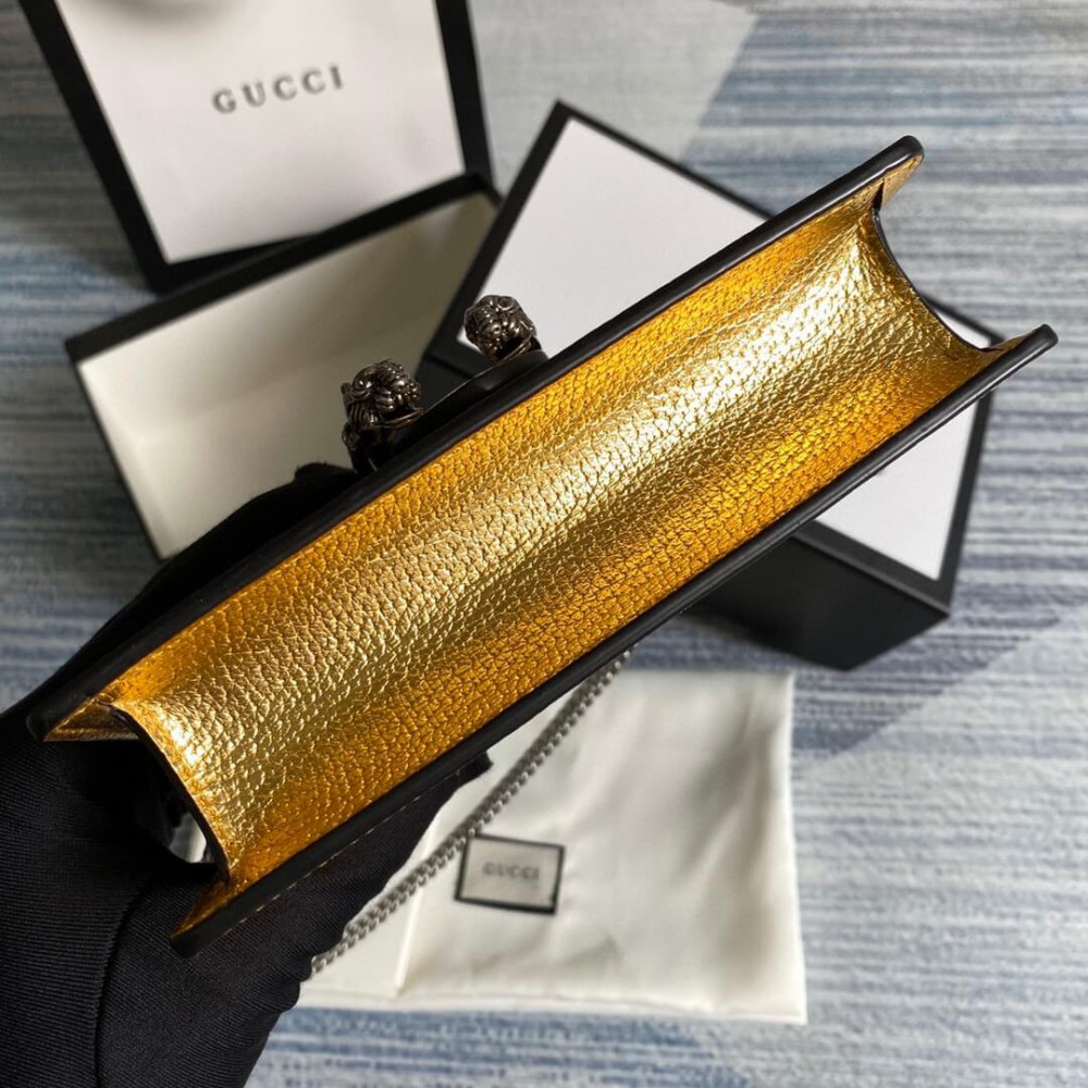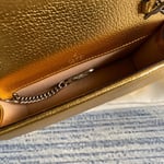 The structured super mini bag is introduced in metallic silver leather, with a key ring that can be used to attach the bag to a separate larger bag. The closure features the textured tiger head spur―the unique detail defines the line, referencing the Greek god Dionysus, who in myth is said to have crossed the river Tigris on a tiger sent to him by Zeus.