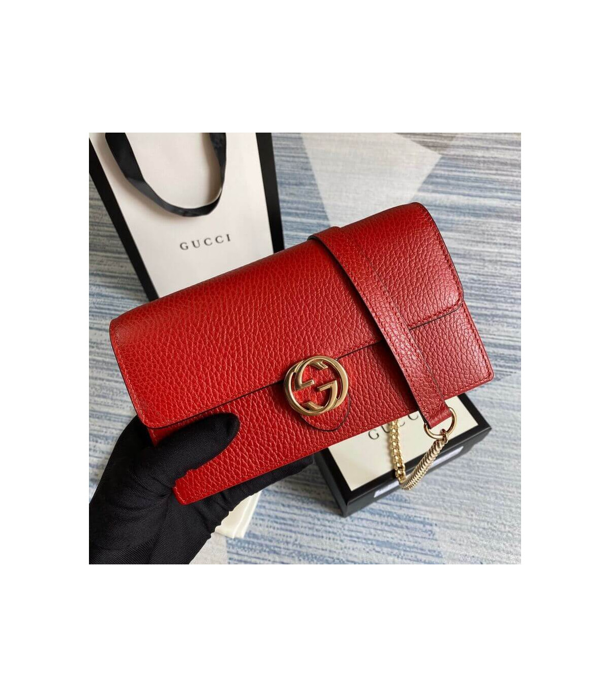Gucci GG Interlocking Wallet On Chain Red