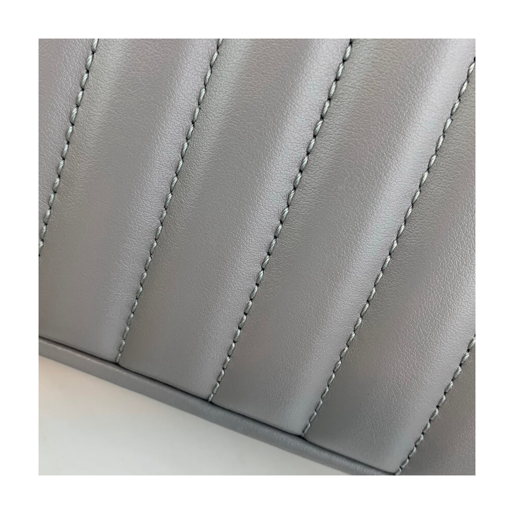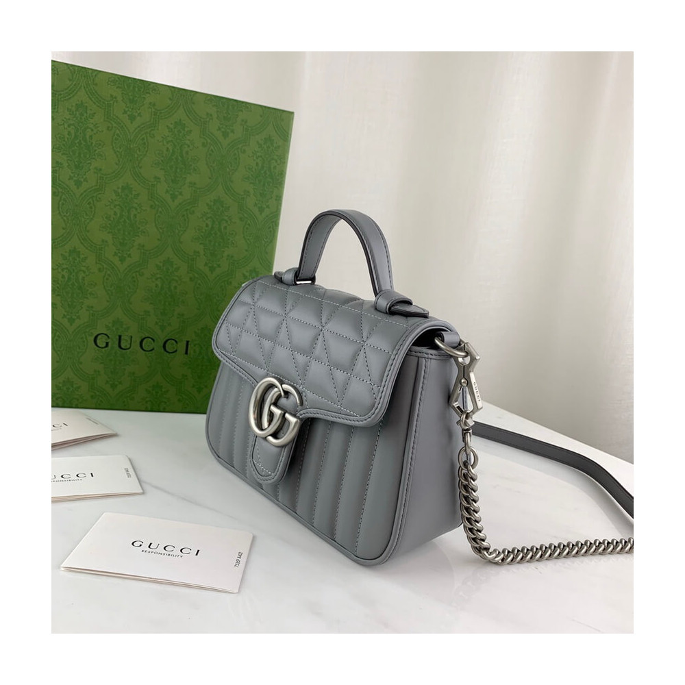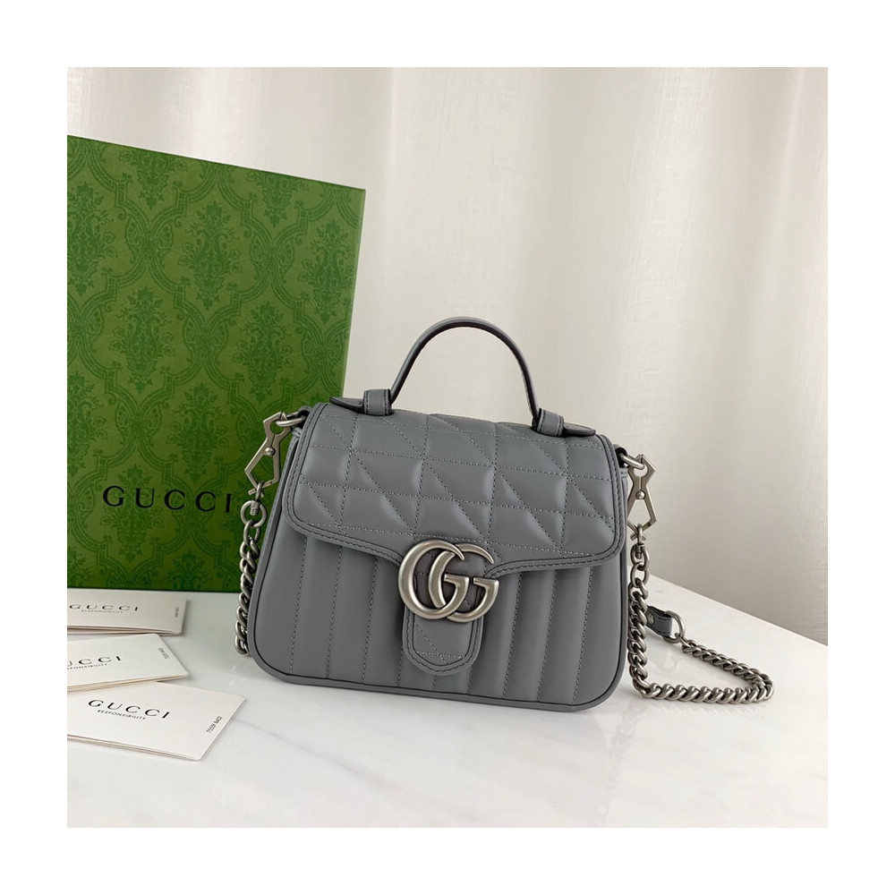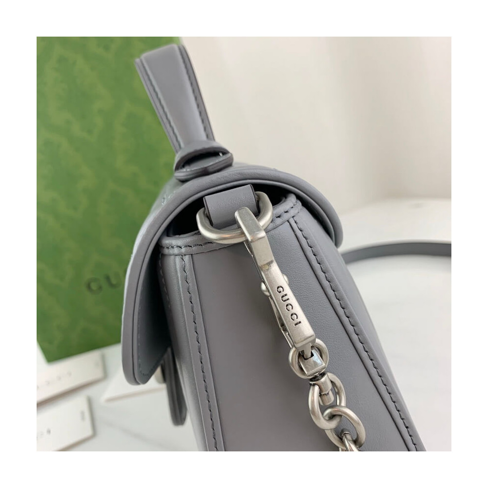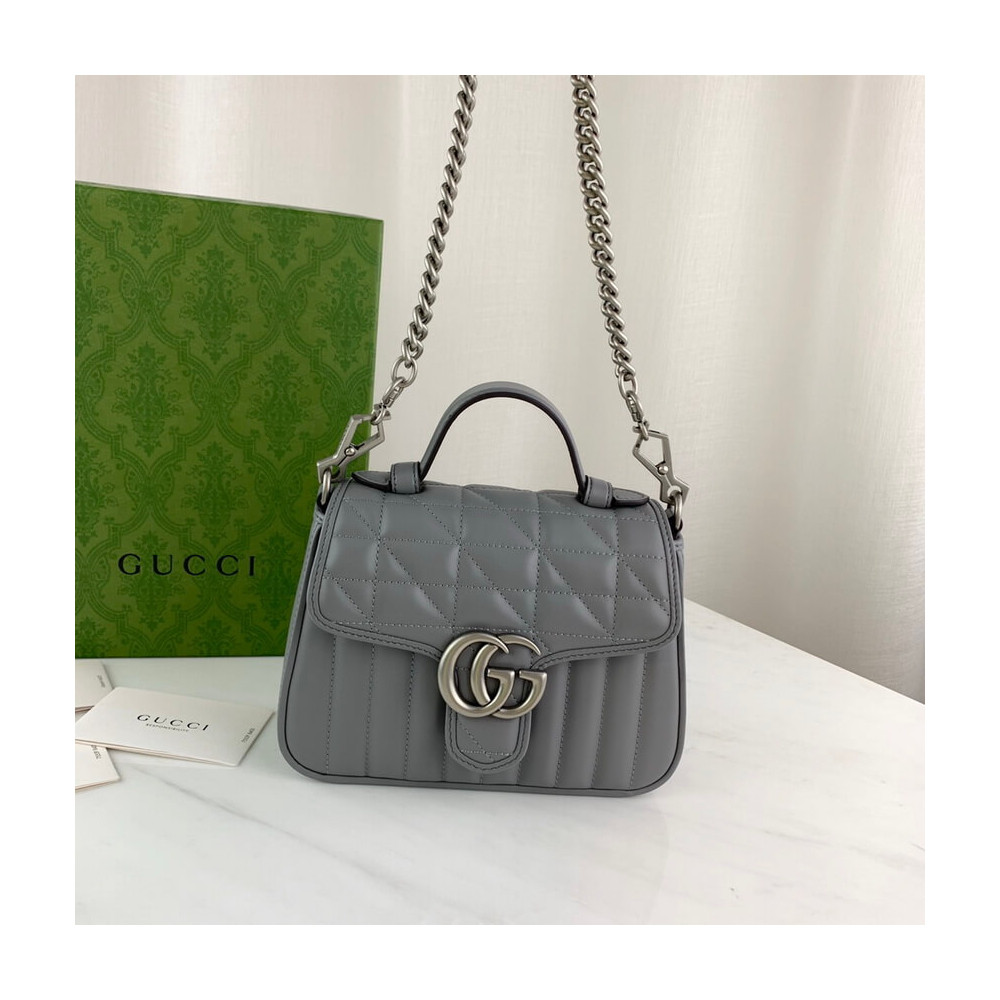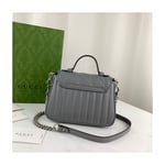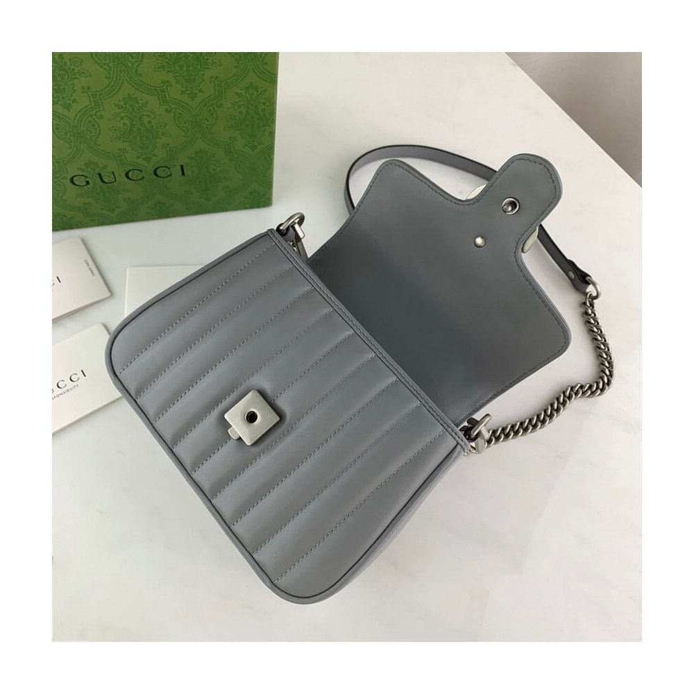 Gucci Aria explores the House’s archives, telling Gucci’s story though a mix of archival and contemporary elements. The GG Marmont was introduced in one of the Creative Director’s first fashion shows and each season its design evolves through the lens of the latest collection. Here, the mini bag is presented in soft white matelassé leather with antique silver-toned hardware.