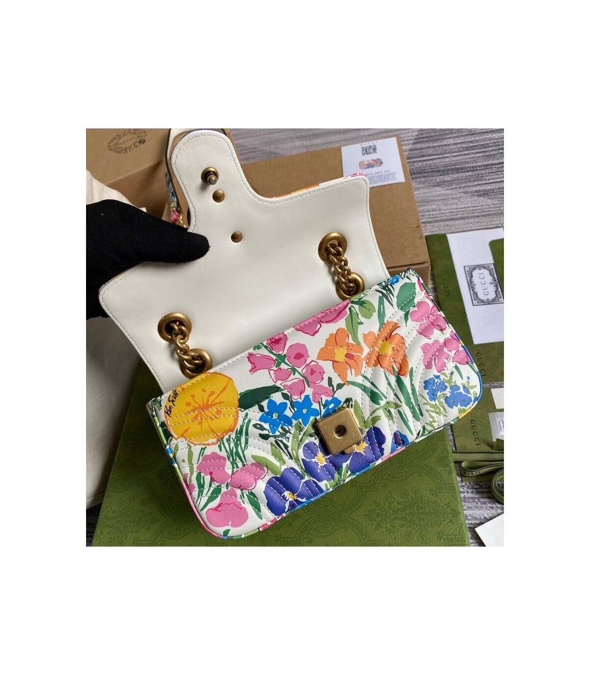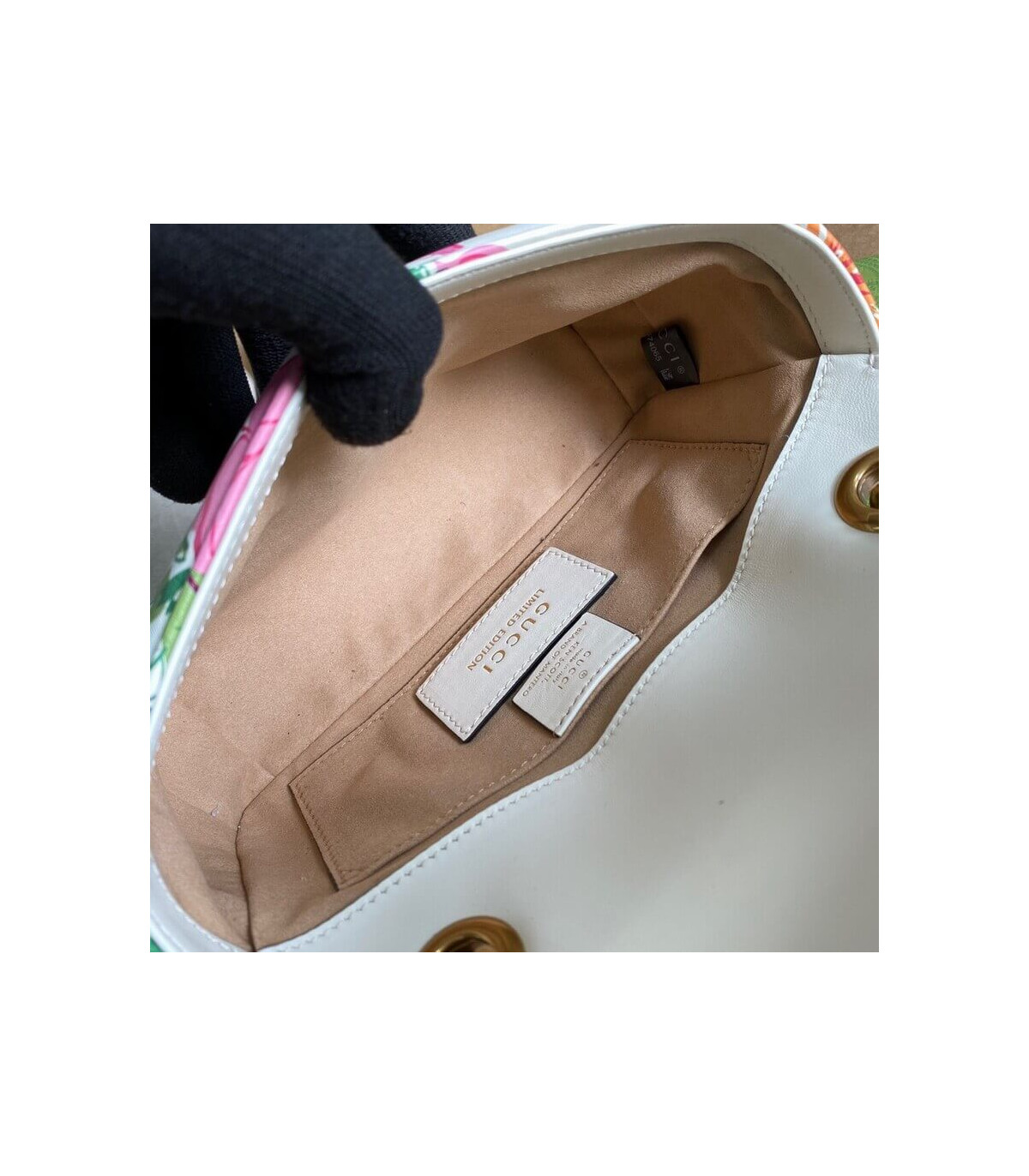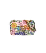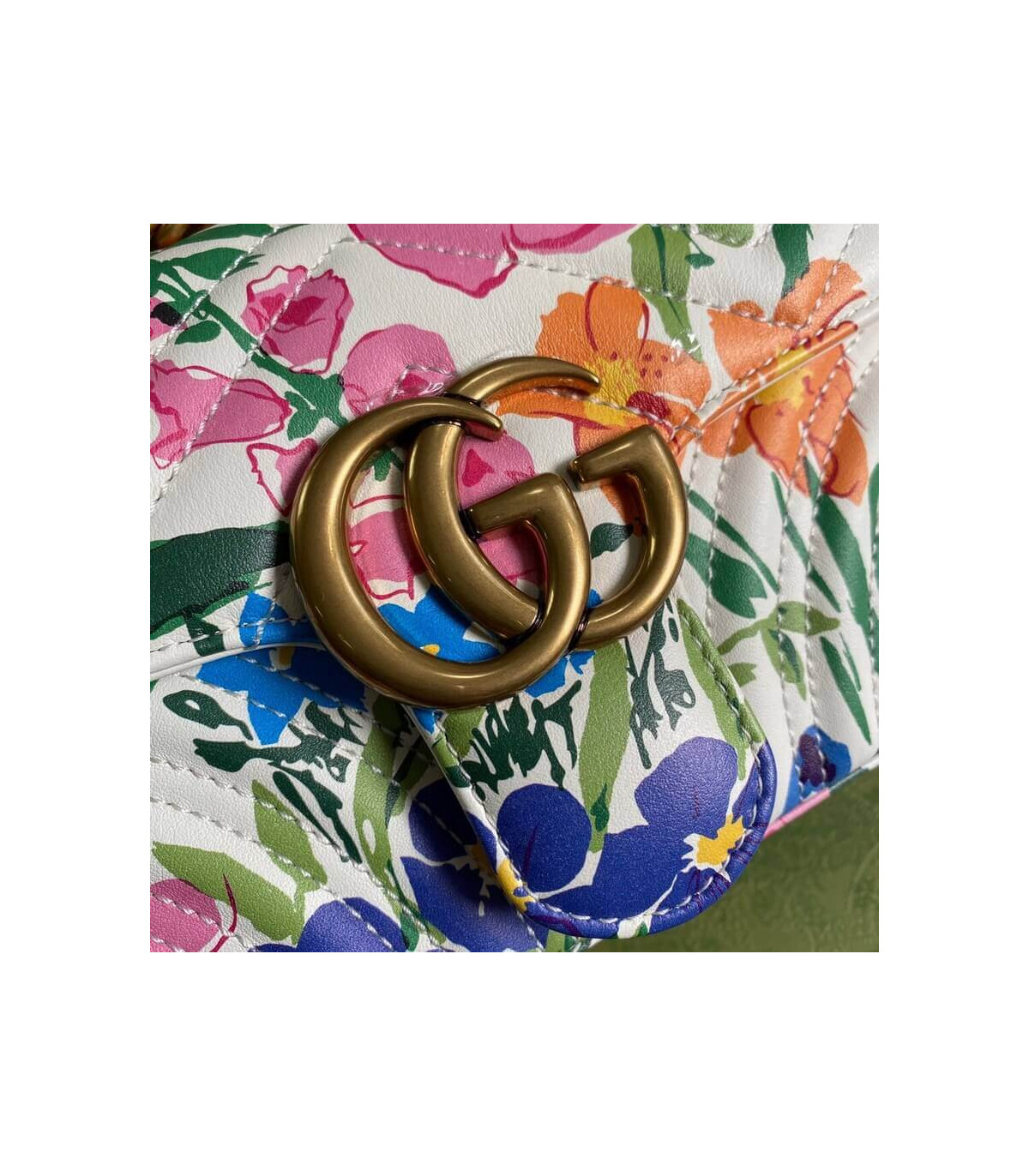 A bright botanical print by Ken Scott animates this mini shoulder bag. Nicknamed the ‘Fashion Gardener,’ Ken Scott was an American designer who lived in Milan in the ‘60s and ‘70s and whose colorful floral drawings were reflective of his eclectic personality. The GG Marmont mini bag is completed by its signature monogram hardware.