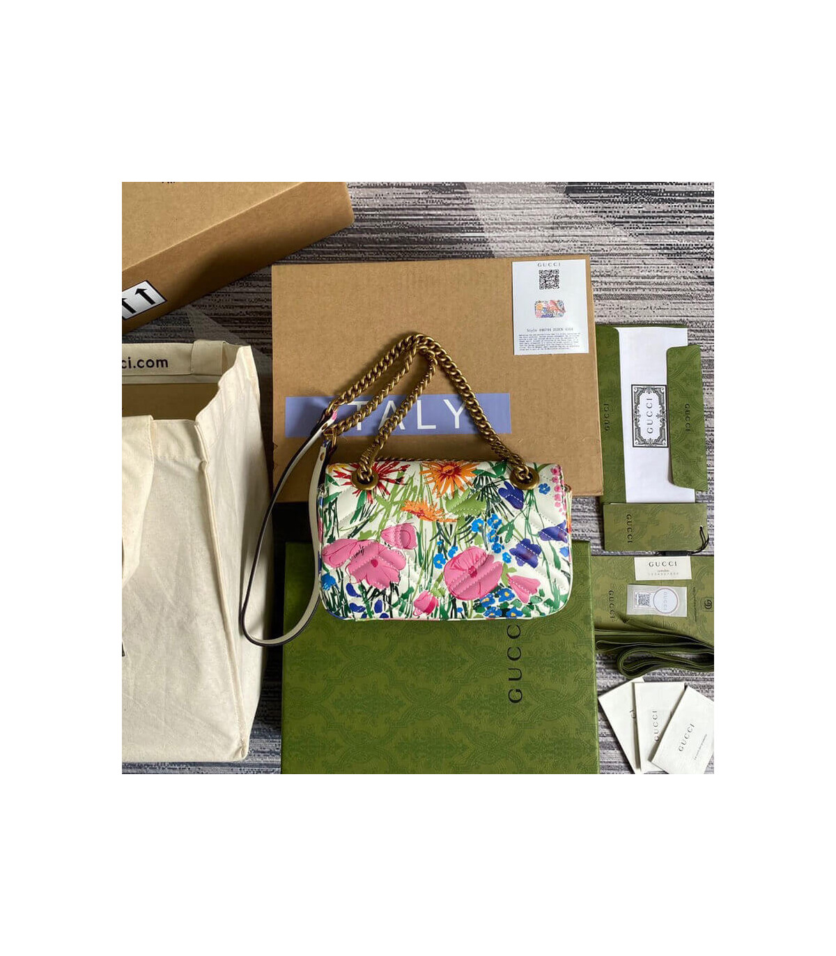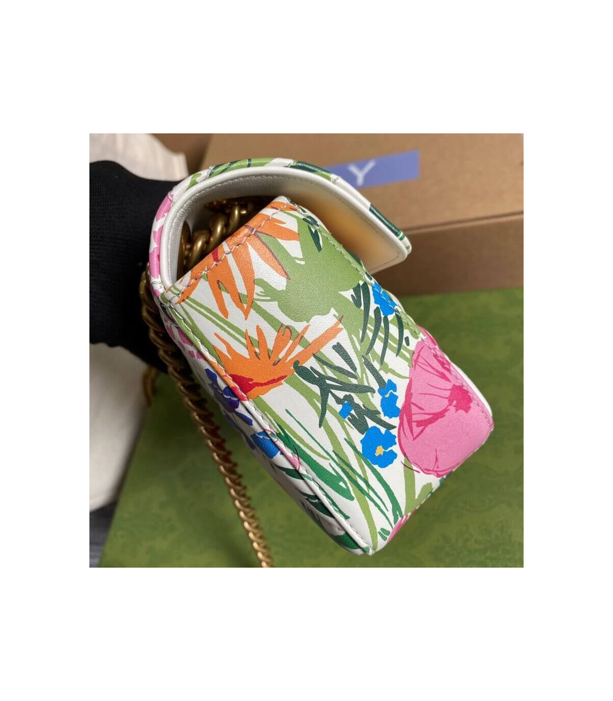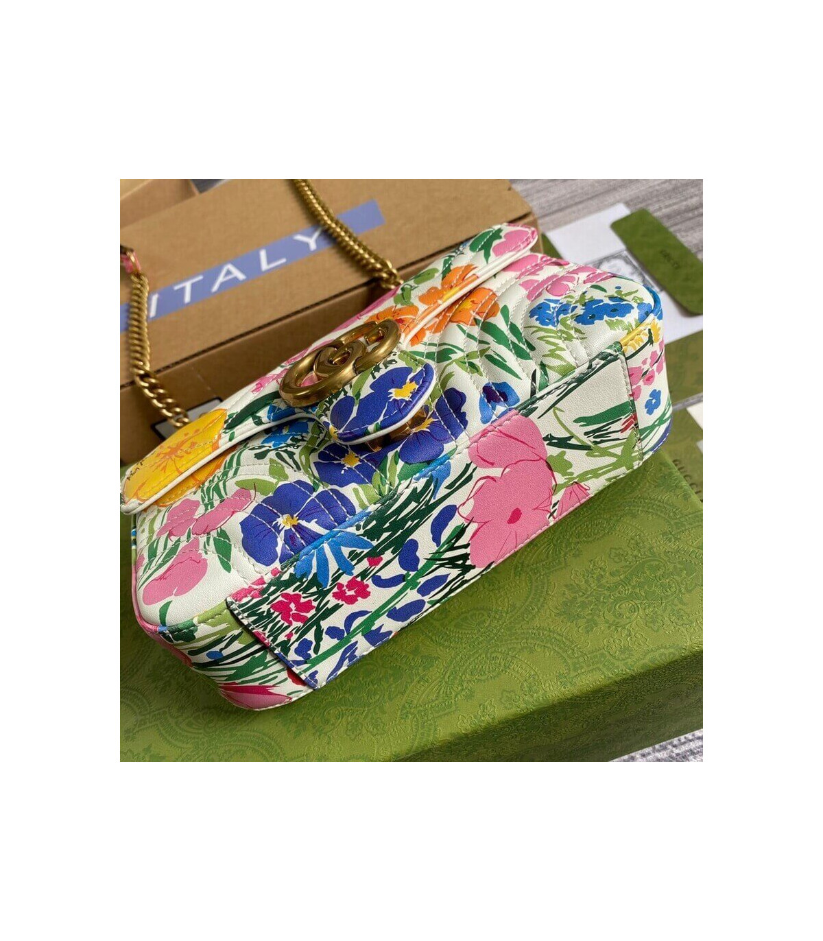 A bright botanical print by Ken Scott animates this mini shoulder bag. Nicknamed the ‘Fashion Gardener,’ Ken Scott was an American designer who lived in Milan in the ‘60s and ‘70s and whose colorful floral drawings were reflective of his eclectic personality. The GG Marmont mini bag is completed by its signature monogram hardware.