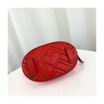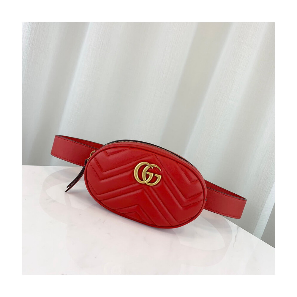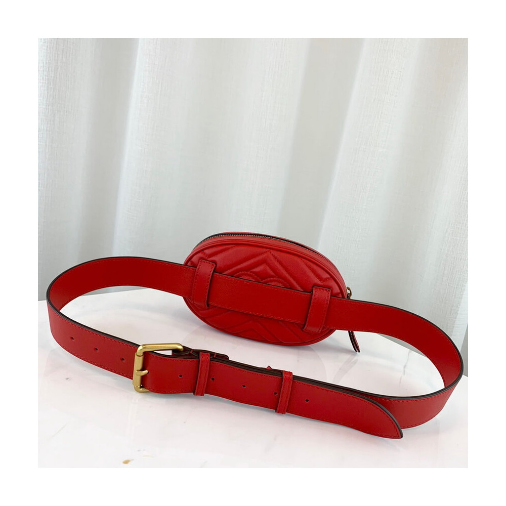 Part of the GG Marmont line, the belt bag was presented for the first time by Alessandro Michele in the Pre-Fall 2017 collection. It has a sportswear-inspired rounded shape with a leather belt which is designed so the bag can be worn high on the waist. It features the recognizable Double G detail-an archival play on the Running G.