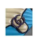 �C Pastel blue and butter diagonal matelassé leather
