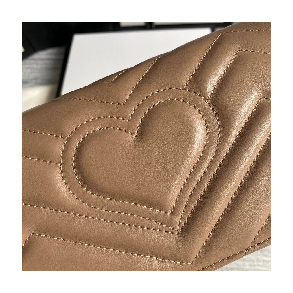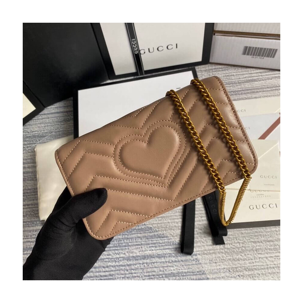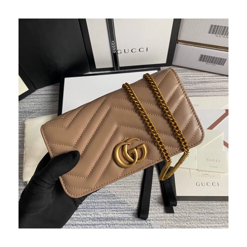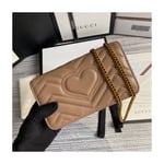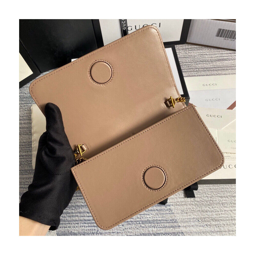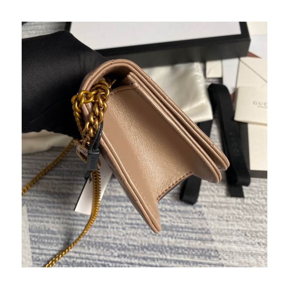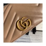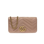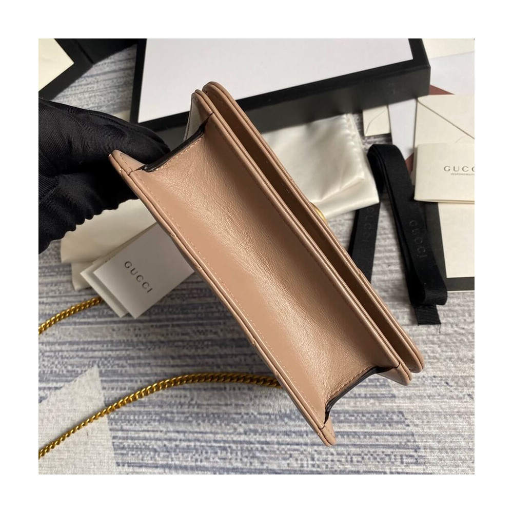 The GG Marmont chain mini bag has a softly structured shape and oversized flap closure with Double G hardware. The hardware is inspired by an archival design from the ’70s. Made in matelassé chevron leather.