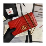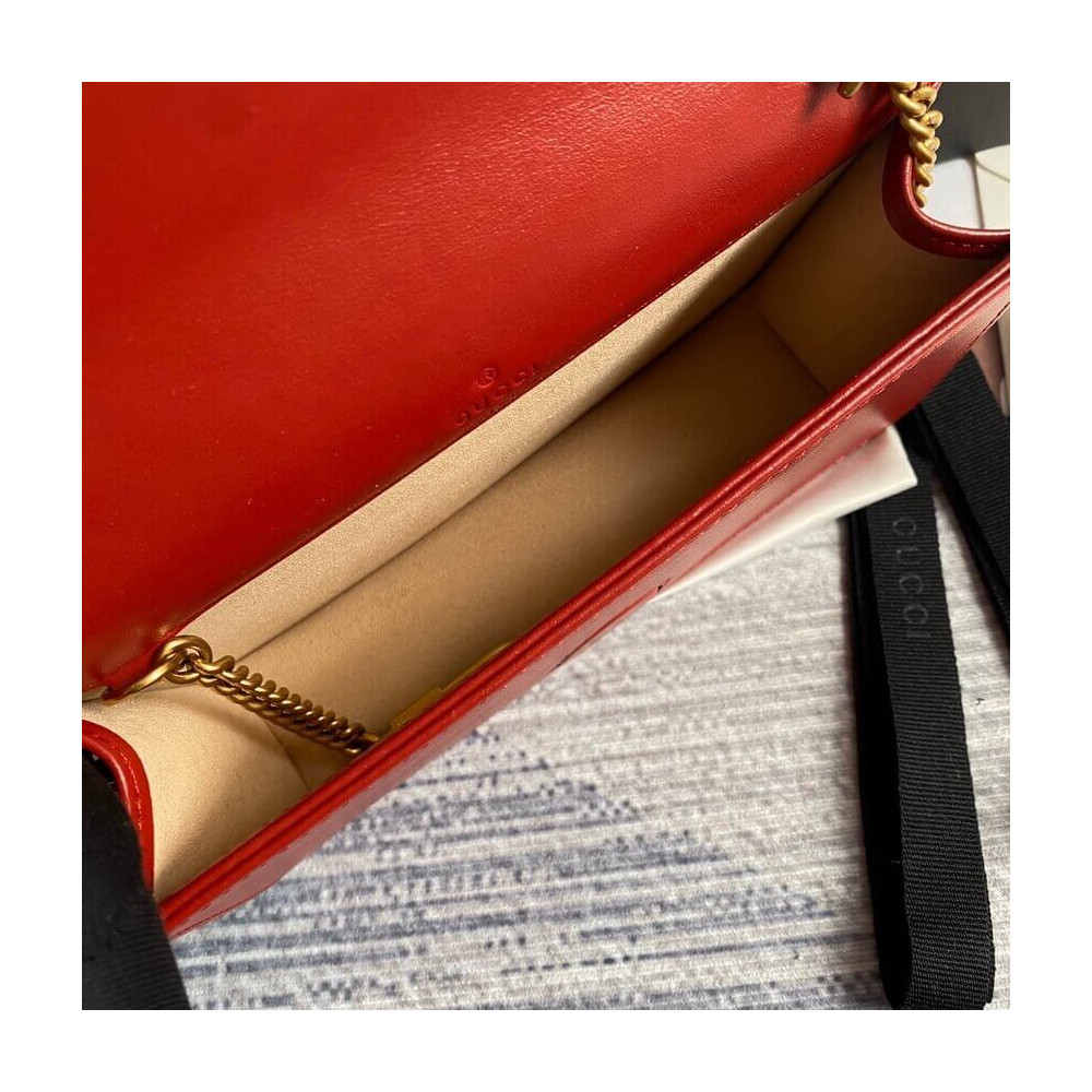 The GG Marmont chain mini bag has a softly structured shape and oversized flap closure with Double G hardware. The hardware is inspired by an archival design from the ’70s. Made in matelassé chevron leather.