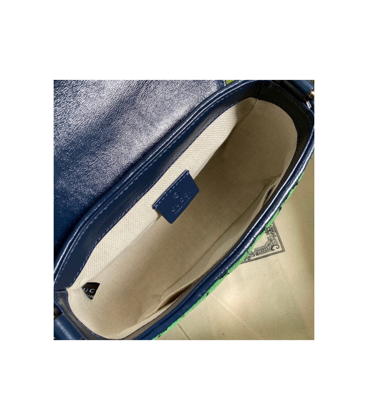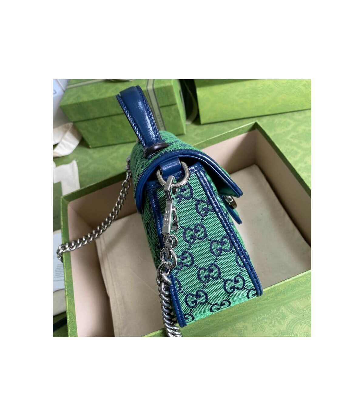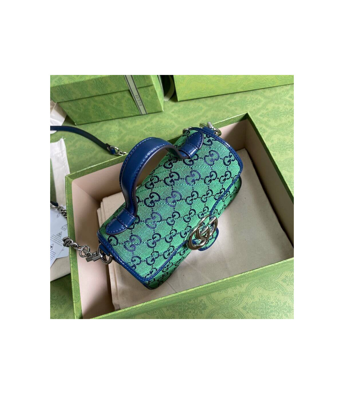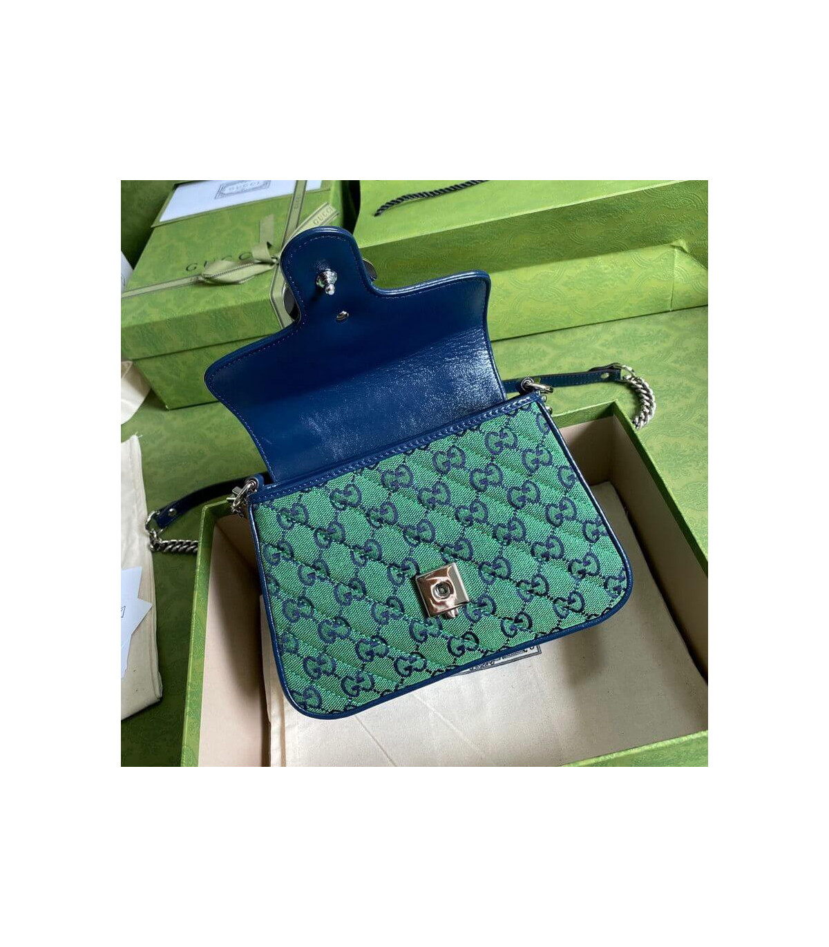 �C?Green and blue diagonal matelassé GG canvas