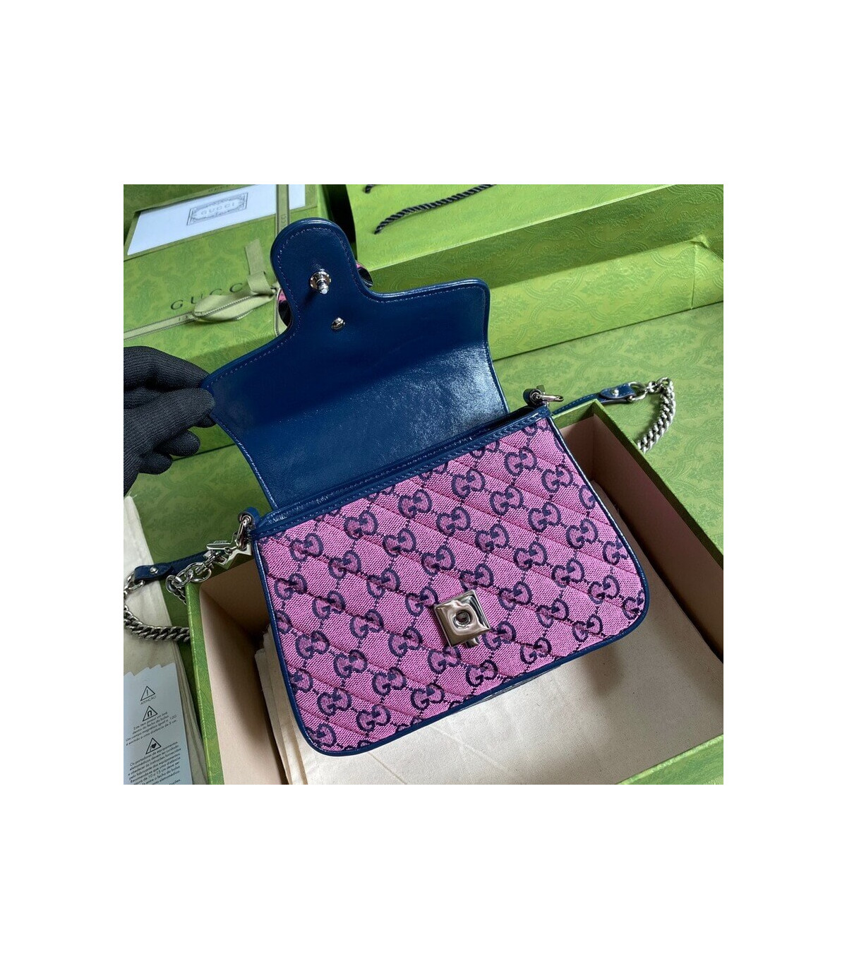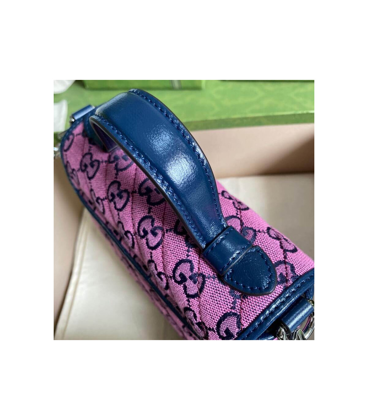 �C Pink and blue diagonal matelassé GG canvas